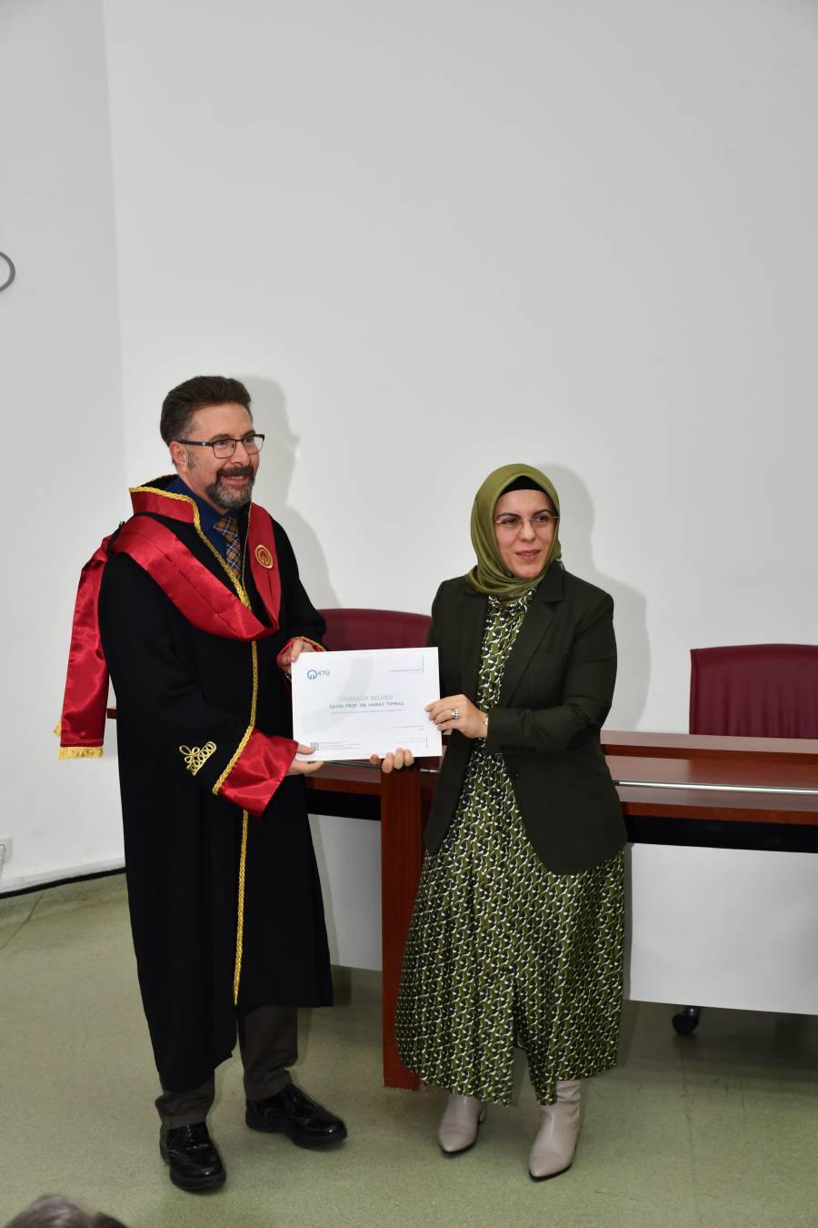 Genel kurul kapsamında, 2024 yılı KTÜ AVESİS akademik performans puanlarına göre ilk üç sırada yer alan öğretim üyelerimiz ile TÜBİTAK 2209-Üniversite Öğrencileri Araştırma Projeleri kapsamında 2025 yılı içerisinde en fazla danışmanlık yapan öğretim üyemize teşekkür belgeleri takdim edildi.
