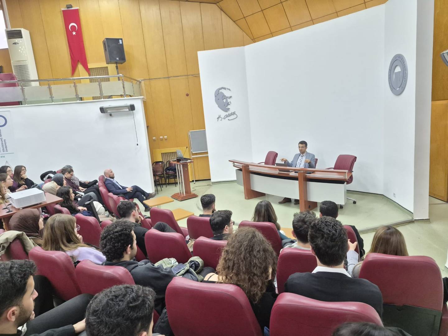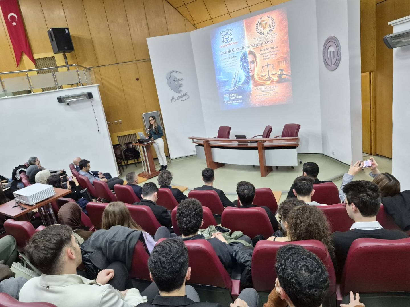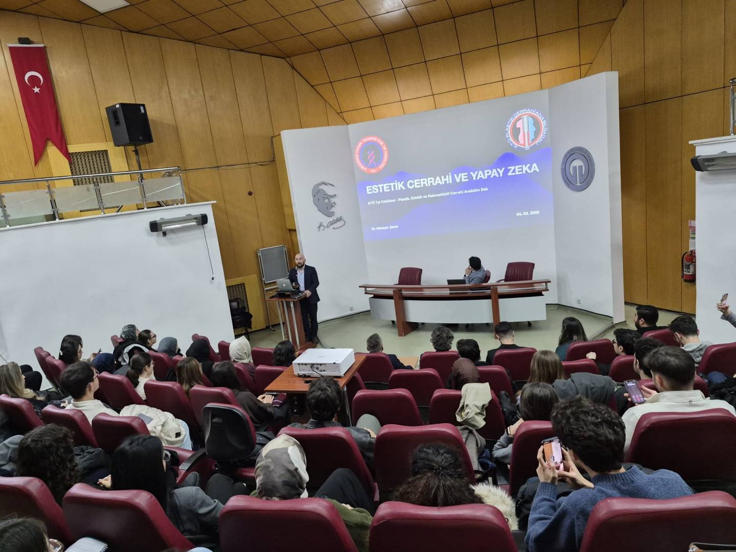 Fakültemiz Karadeniz Tıp Öğrencileri Birliği ile Trabzon Üniversitesi Hukuk Kulübü iş birliğinde düzenlenen “Neşter mi, Algoritma mı?” başlıklı konferans, 4 Mart 2026 tarihinde saat 13.00'te Aydın İnal Amfisi’nde gerçekleşti.