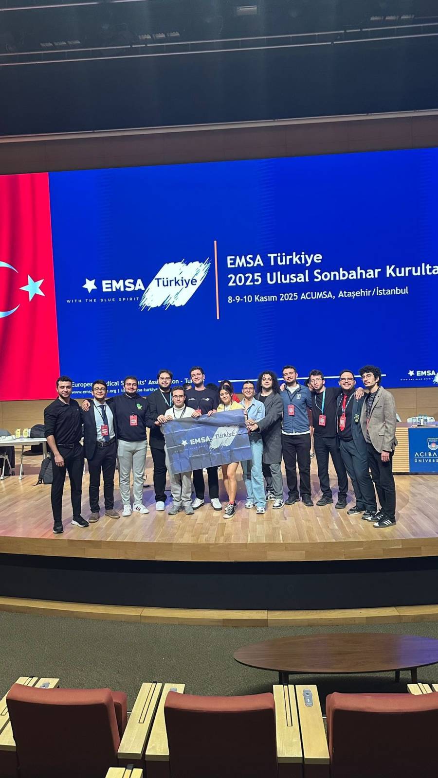 8–10 Kasım 2025 tarihleri arasında Acıbadem Üniversitesi ev sahipliğinde gerçekleştirilen EMSA Türkiye Ulusal Kurultayı’nda yapılan seçimler sonucunda; Fakültemiz 5. sınıf öğrencisi Baran Mert ÇİÇEK, EMSA Türkiye Başkanı/Ulusal Koordinatörü olarak seçilirken, Fakültemiz 2. sınıf öğrencisi Murat Eren USTA EMSA Türkiye Sekreteri, 5. sınıf öğrencisi Ali Hakan POYRAZ ise EMSA Türkiye Denetim Kurulu Üyesi olarak göreve seçildi.