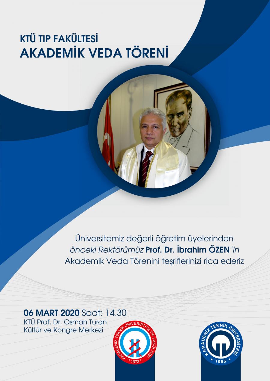 Fakültemiz öğretim üyelerinden önceki Rektörümüz Prof. Dr. İbrahim ÖZEN 'in, Akademik Veda Törenine teşriflerinizi rica ederiz.