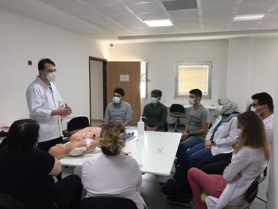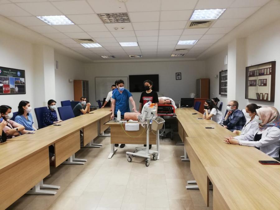 Uygulamalı eğitimler, küçük gruplar halinde erişkin ve pediatrik olmak üzere Acil Tıp Anabilim Dalı ve Simülasyon Merkezinde 22, 25 ve 29 Haziran 2021 tarihlerinde yapıldı.