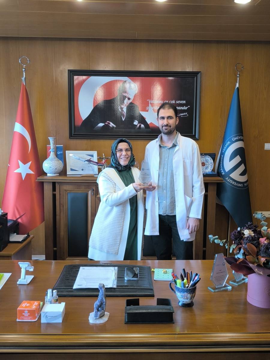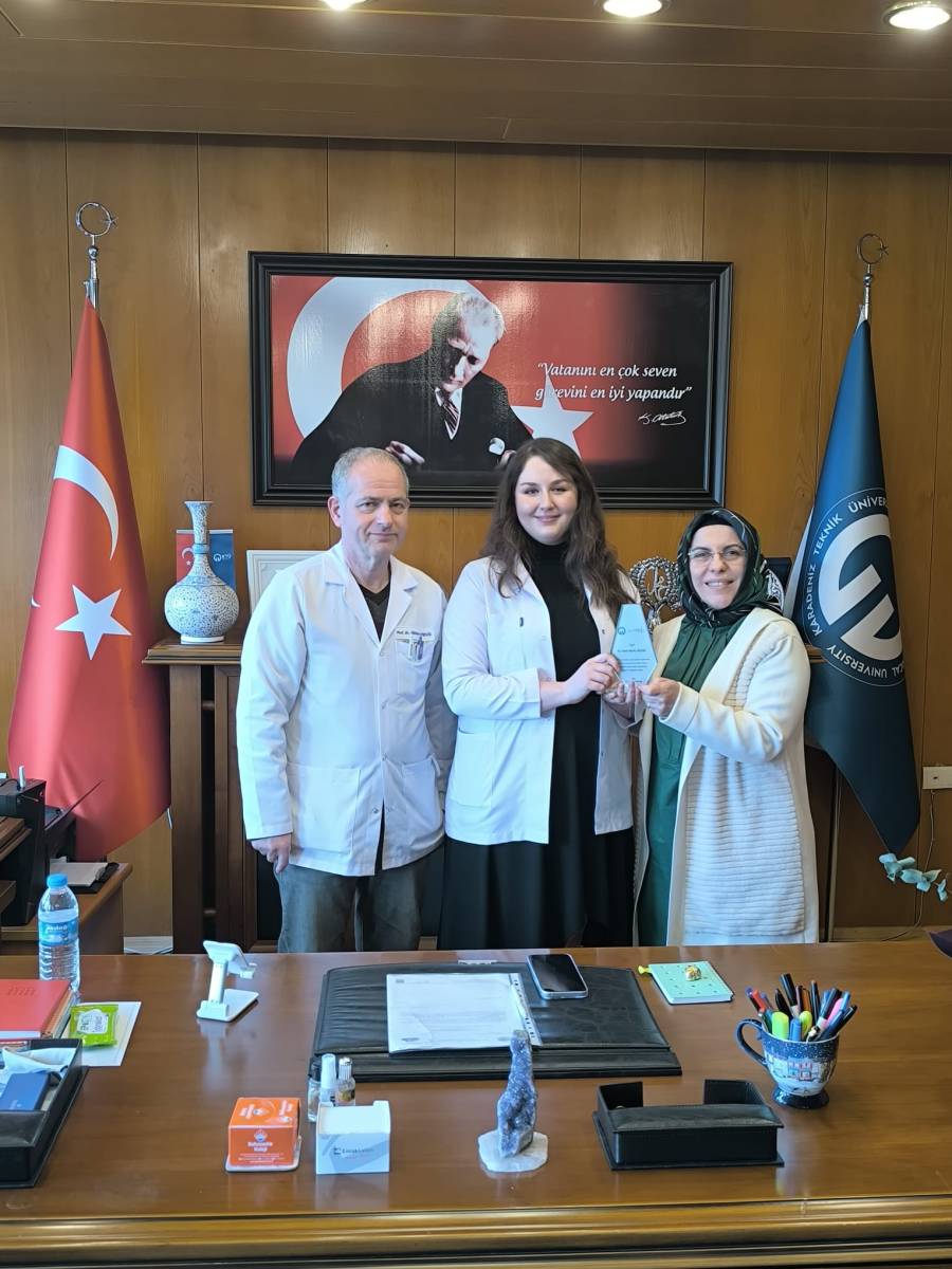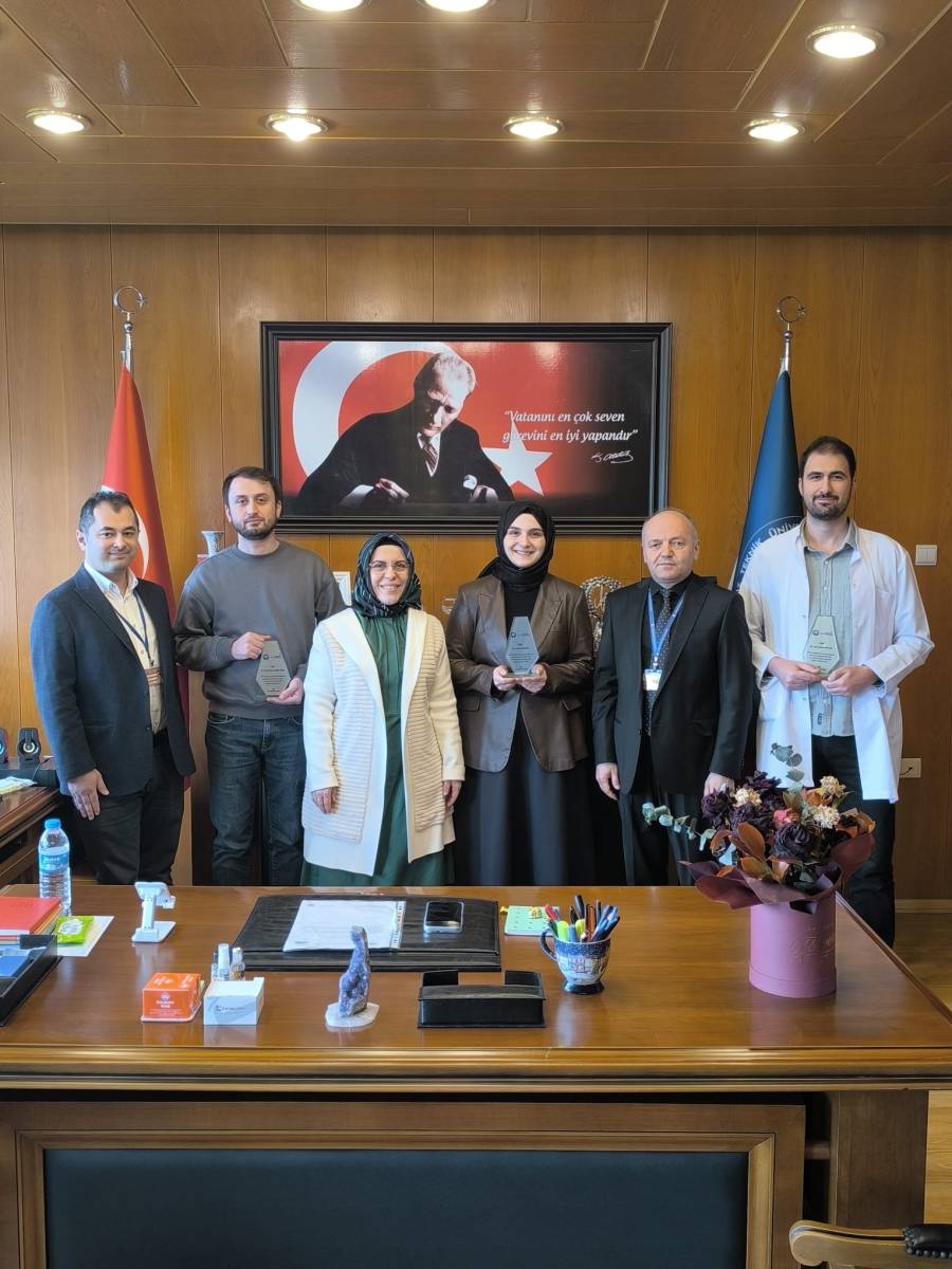 Fakültemizde uzmanlık eğitimlerini tamamlayan Çocuk Sağlığı ve Hastalıkları Anabilim Dalından Çocuk Endokrinoloji Yan Dal Uzm. Dr. Hakan KARDEŞ, Göz Hastalıkları Anabilim Dalından Uzm. Dr. İrem Berfu BOZAT, Aile Hekimliği Anabilim Dalından Uzm. Dr. Kübra GÜNEŞ, Uzm. Dr. Can Deniz ATALAY ve Uzm. Dr. Erkut İhsan Şamil ARICI'ya Dekanımız Prof. Dr. Sevdegül AYDIN MUNGAN tarafından plaketleri takdim edildi.