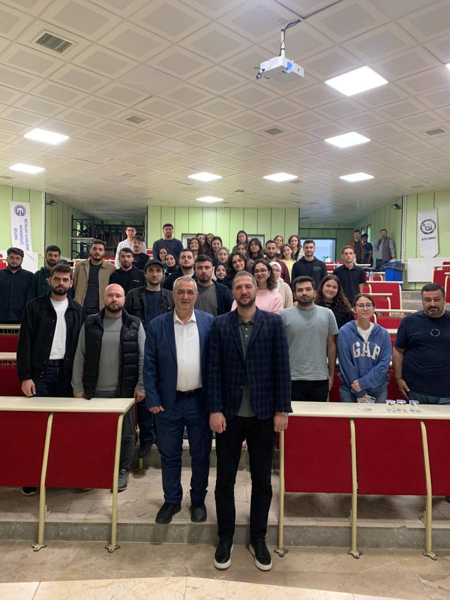 Etkinliğin açılış konuşmasını yapan Bölüm Başkanımız Prof. Dr. Aykut Çanakçı, medikal malzeme sektörünün yüksek hassasiyet gerektiren ve sürekli gelişim gösteren bir alan olduğuna dikkat çekerek, sektör-bölüm iş birliklerinin akademik ve uygulamalı bilgi aktarımı açısından büyük önem taşıdığını ifade etmiştir. Ayrıca, Çanakçı konuşmasında, sağlık teknolojilerinin gelişiminde malzeme mühendisliğinin belirleyici bir role sahip olduğunun altını çizmiştir.