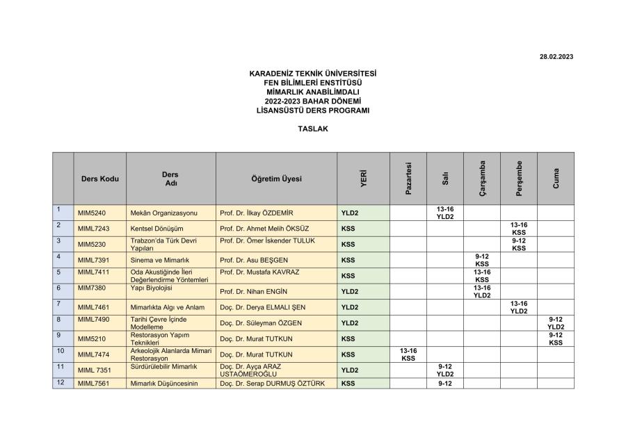 2022-2023 Bahar Yarıyılı Lisansüstü Ders Programı Güncel