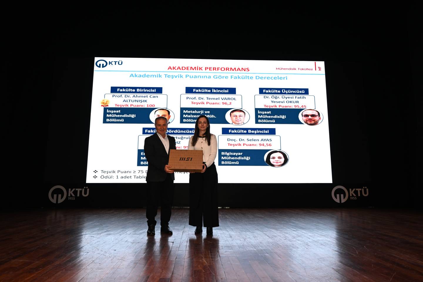 Rektörümüz Prof. Dr. Hamdullah Çuvalcı başta olmak üzere çok sayıda yönetici, sivil toplum kuruluşu, kamu kurum ve kuruluş temsilcisi, akademik ve idari personelimizin katıldığı kurulun en dikkat çekici bölümlerinden biri ödül ve teşekkür belgelerinin takdimi oldu. Akademik performansı teşvik etmeye yönelik kurgulanan ödül sisteminde, dizüstü bilgisayar ve tablet kategorileri öne çıktı. Fakülte genel başarı sıralaması, stratejik plana katkı, “En Başarılı Genç Bilim İnsanı” ve SCI-E kapsamında Q1+Q2 makale üretimi gibi üst düzey başarı kriterlerinde dereceye giren akademisyenlere dizüstü bilgisayar verildi. Akademik teşvik puanı, proje bütçesi, Horizon proje başvuruları, patent performansı ve uluslararası iş birlikli yayınlar gibi alanlarda öne çıkan öğretim üyeleri ve araştırma görevlileri ise tablet ile ödüllendirildi.