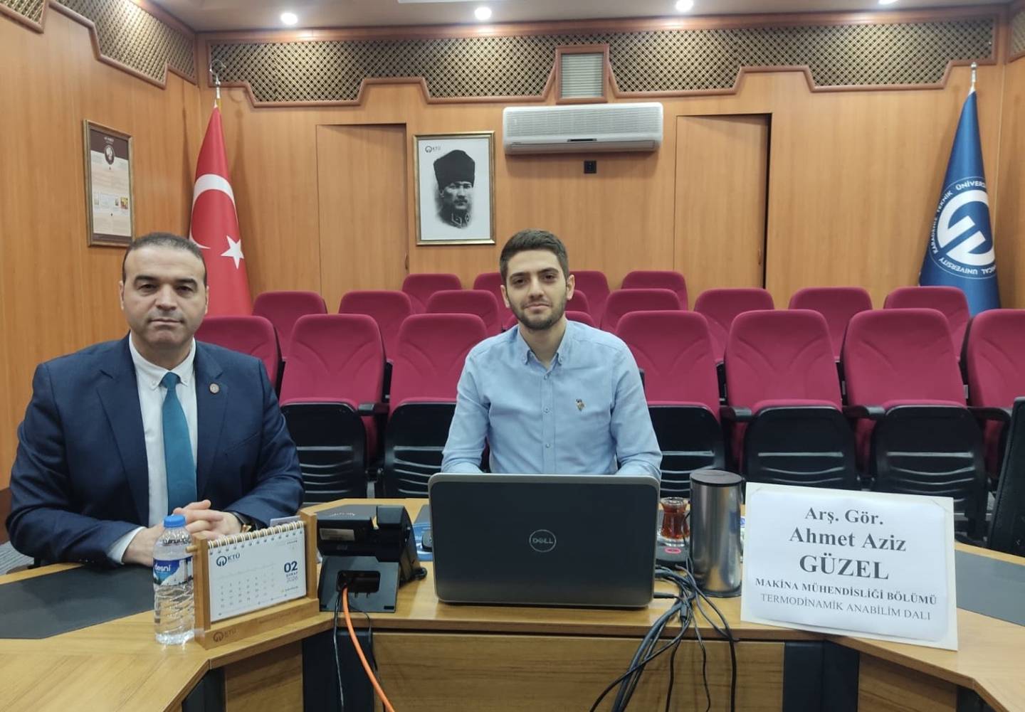 Makina Mühendisliği Bölümü Termodinamik Anabilim Dalı Araştırma Görevlisi Ahmet Aziz GÜZEL (yüksek lisans programı) ve Makina Mühendisliği Bölümü Otomotiv Anabilim Dalı Araştırma Görevlisi Bahri Barış VATANDAŞ (doktora programı) Hocalarımızla 18.02.2026 tarihinde görüşmeler yapılmıştır.