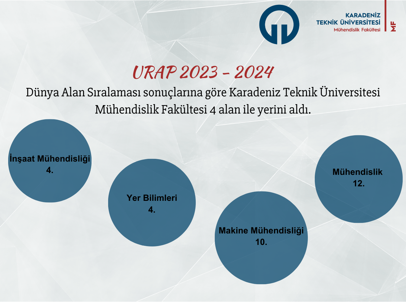 URAP 2023-2024 Dünya Alan Sıralaması sonuçlarına göre Karadeniz Teknik Üniversitesi, mühendislik alanında önemli bir başarı elde etti.