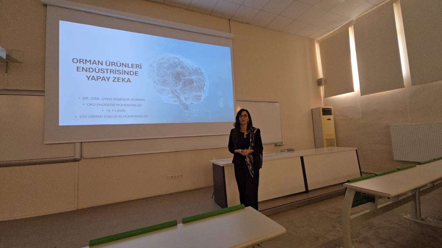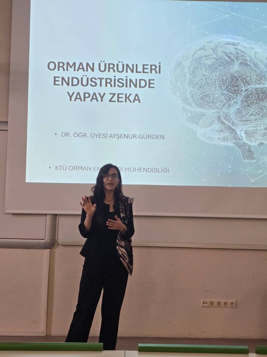 Bu haftaki seminer programımız Dr.Öğr.Üyesi Ayşenur Gürgen’in “Orman Ürünleri Endüstrisinde Yapay Zeka” konulu semineri ile gerçekleştirilmiştir. Yapmış oldukları sunum ve eğitim öğretimimize yaptıkları katkılar için kendilerine çok teşekkür ederiz.