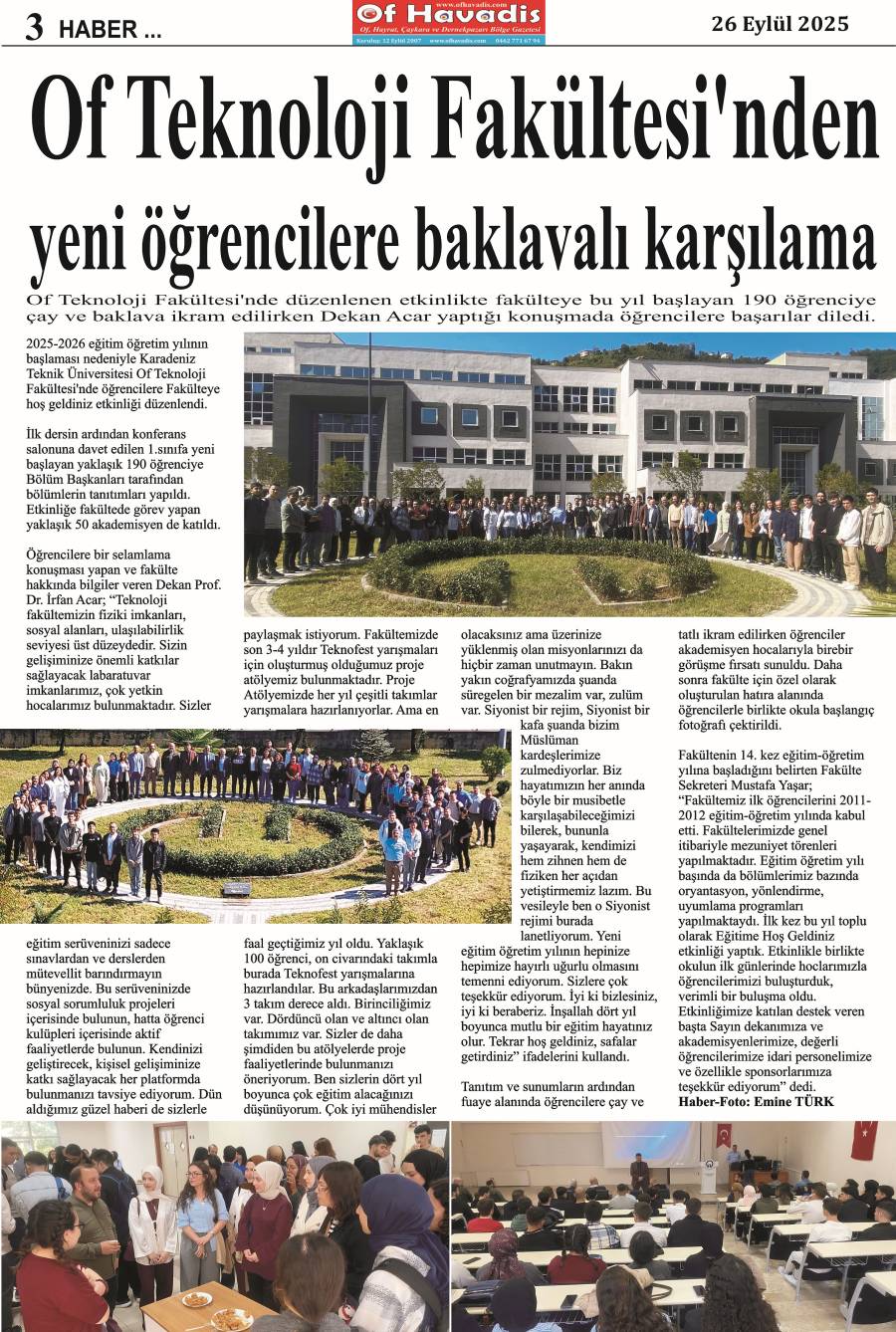 Kurumlar Arası Geçiş ile Fakültemize atanan Bilgisayar İşletmeni Hüseyin Öztürk 19.12.2025 tarihi itibariyle görevine başladı.