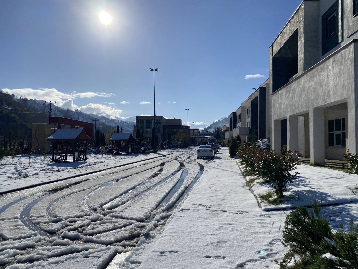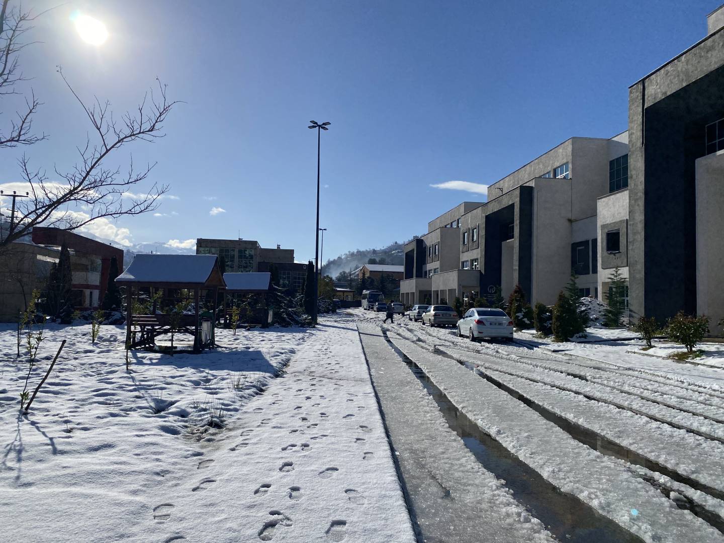 Tedarik edilen meyve fidanları, tüm bölümlerimizden öğrencilerimiz, akademik ve idari personelimizin katılımıyla bahçeye dikildi.
