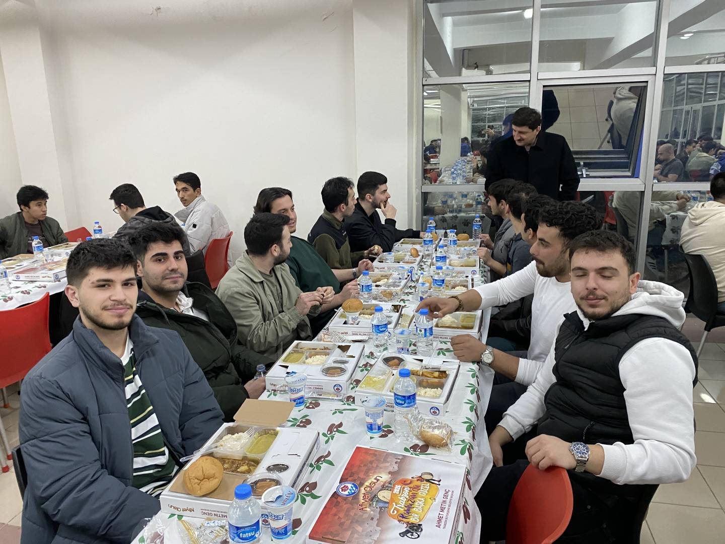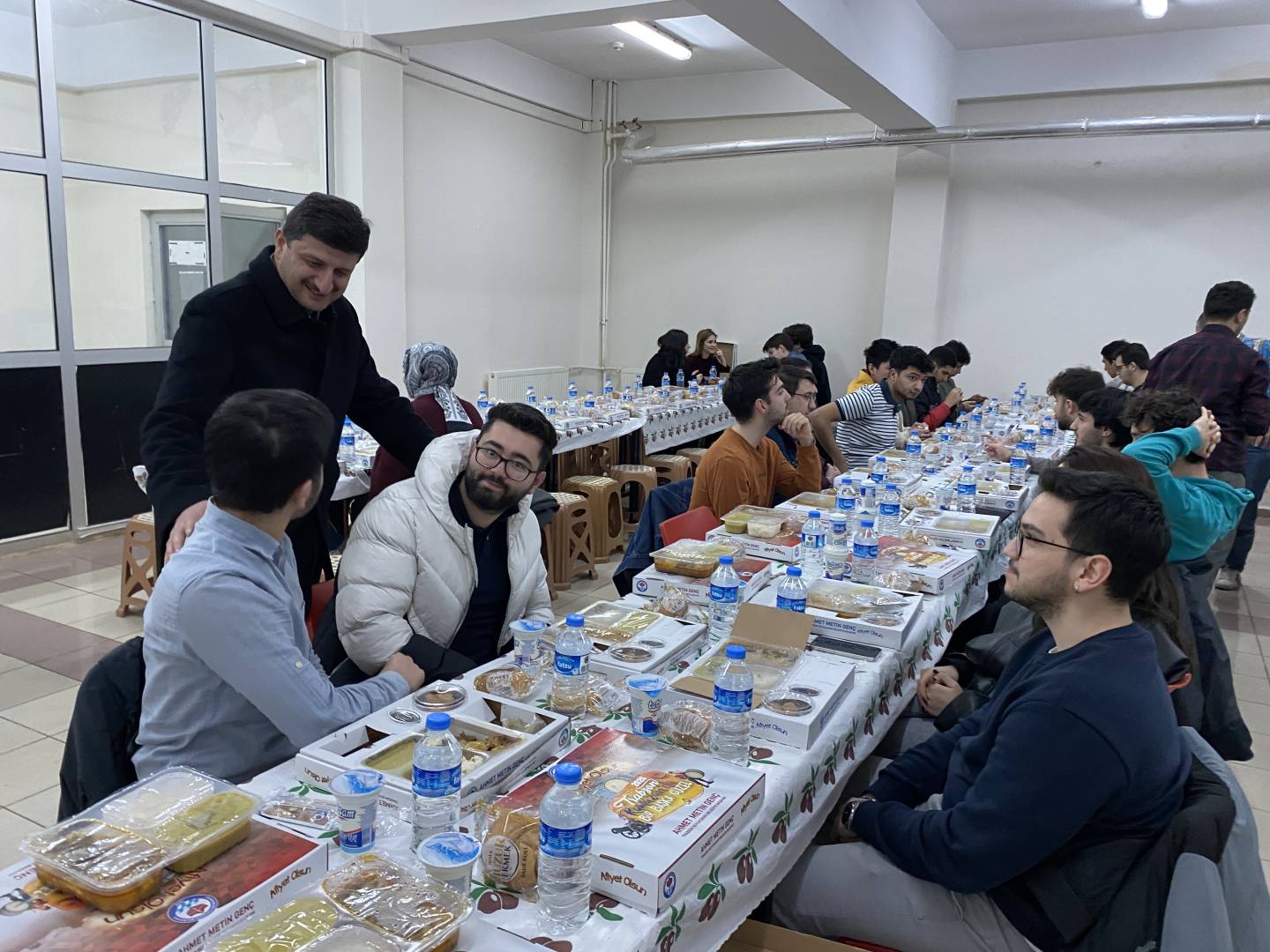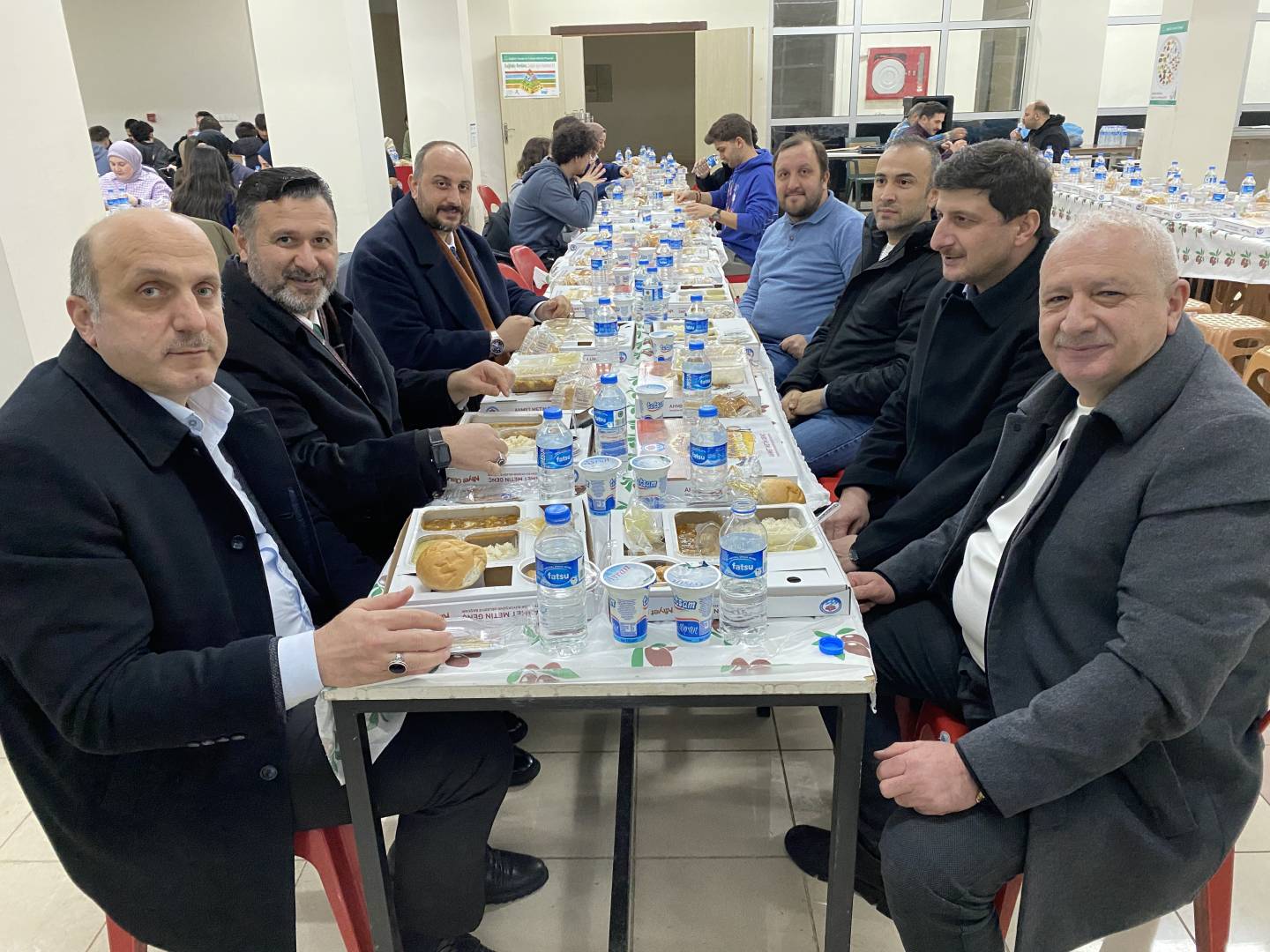 Trabzon Büyükşehir Belediye Başkanlığı'nın destekleriyle fakültemiz öğrencilerine iftar yemeği verildi. Yaklaşık 350 öğrencimizin katıldığı iftar yemeğine Dekanımız Sayın Prof. Dr. İrfan Acar, Üniversitemiz İdari ve Mali İşler Daire Başkanı İsmail Küçük, Yapı İşleri Daire Başkanı Yasin Öztel, Güvenlik ve Koruma Şube Müdürü Hasan Yaman, Fakülte Sekreterimiz Mustafa Yaşar, akademik ve idari personelimiz öğrencilerimizle birlikte iftar açtılar.