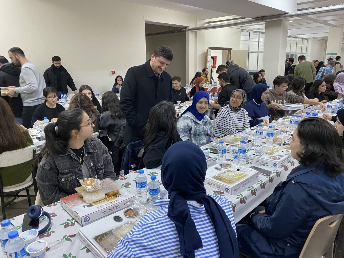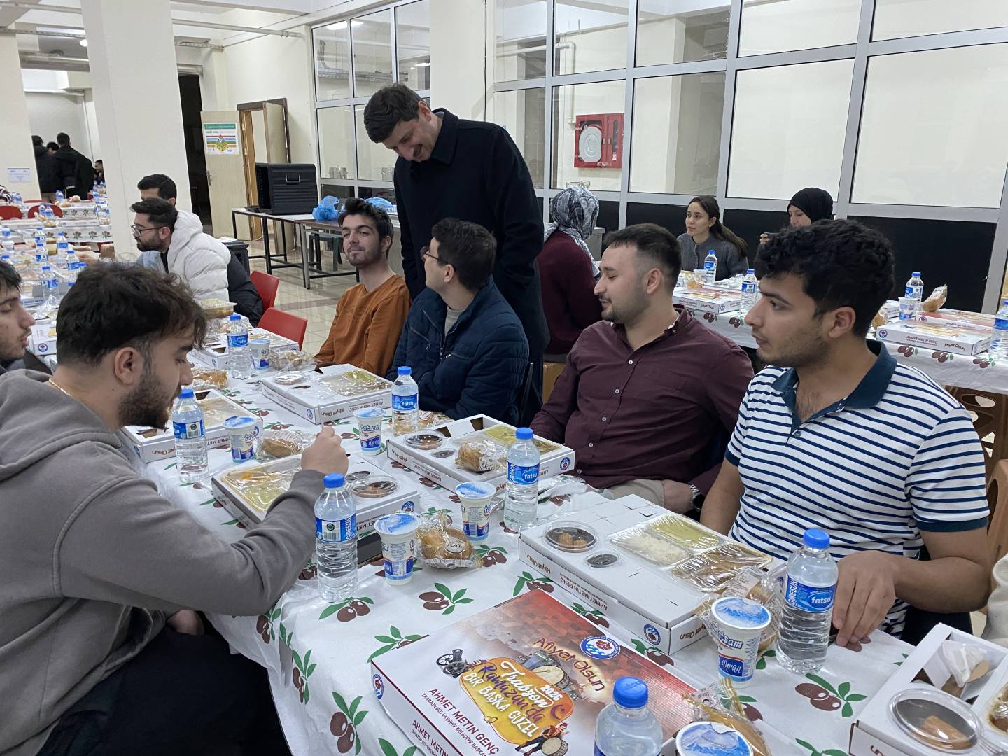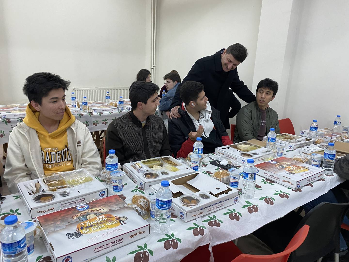 Trabzon Büyükşehir Belediye Başkanlığı'nın destekleriyle fakültemiz öğrencilerine iftar yemeği verildi. Yaklaşık 350 öğrencimizin katıldığı iftar yemeğine Dekanımız Sayın Prof. Dr. İrfan Acar, Üniversitemiz İdari ve Mali İşler Daire Başkanı İsmail Küçük, Yapı İşleri Daire Başkanı Yasin Öztel, Güvenlik ve Koruma Şube Müdürü Hasan Yaman, Fakülte Sekreterimiz Mustafa Yaşar, akademik ve idari personelimiz öğrencilerimizle birlikte iftar açtılar.