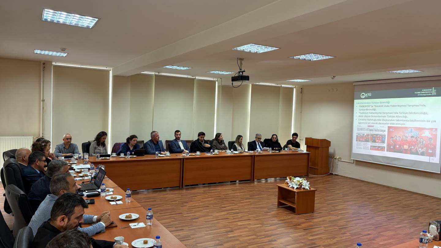 Fakültemiz dekanlık toplantı salonunda yapılan toplantıda, fakültemizin tanıtımı yapılarak, sürdürülen çalışmalar kalite açısından ele alındı. Dekanımız Sayın Prof. Dr. İrfan Acar başkanlığında yapılan sunumda fakültemizin bilimsel ve fiziksel çalışmaları değerlendirildi.