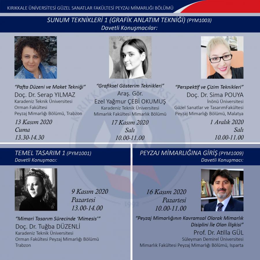 Bölümümüz öğretim üyelerinden, Doç. Dr. Serap YILMAZ ve Doç. Dr. Tuğba DÜZENLİ Kırıkkale Üniversitesi Peyzaj Mimarlığı Bölümü lisans dersleri kapsamında davetli konuşmacı olarak ders sunumu yapmışlardır.
