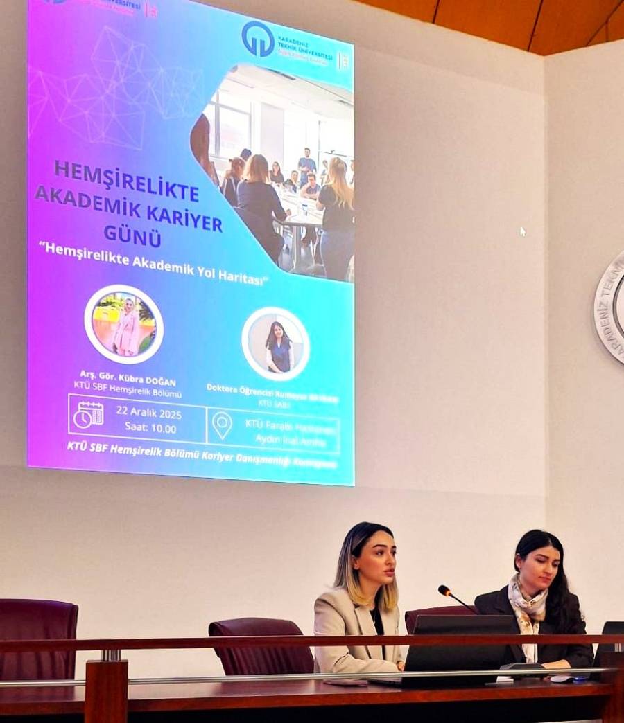 Sağlık Bilimleri Enstitüsü ve Sağlık Bilimleri Fakültesi Hemşirelik Bölümü Kariyer Danışmanlığı Komisyonu iş birliği ile "Hemşirelikte Akademik Kariyer Günü" konulu etkinlik gerçekleştirilmiştir. Etkinlikte Enstitümüz Hemşirelik Anabilim Dalı Doktora Programı öğrencisi Uzman Hemşire Rumeysa BAYRAM ve Hemşirelik Esasları Anabilim Dalı Yüksek Lisans programı öğrencisi Arş. Gör. Kübra DOĞAN konuşmacı olarak deneyimlerini paylaşmış, öğrencilerden gelen soruları yanıtlamıştır.