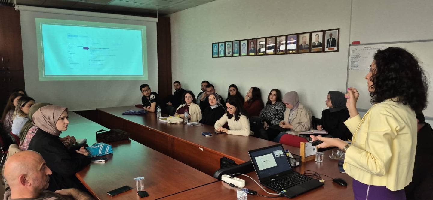 Enstitümüz öğrencileri için düzenlenen ‘’Veri Tabanı Kullanıcı Eğitimi’’ etkinliğimiz 11.11.2025 Tarih ve Saat 11:00' da Enstitü Müdürümüz Prof. Dr. Sedat BOSTAN’ın açılış konuşması ile başladı. Kütüphane Dokümantasyon Daire Başkanlığı öğretim elemanlarından Öğr. Gör. Beyhan KARPUZ’un sunumu ile gerçekleştirildi. Sunumundan dolayı Öğr. Gör. Beyhan KARPUZ’a ve katılım sağlayan öğrencilerimize teşekkür ederiz.