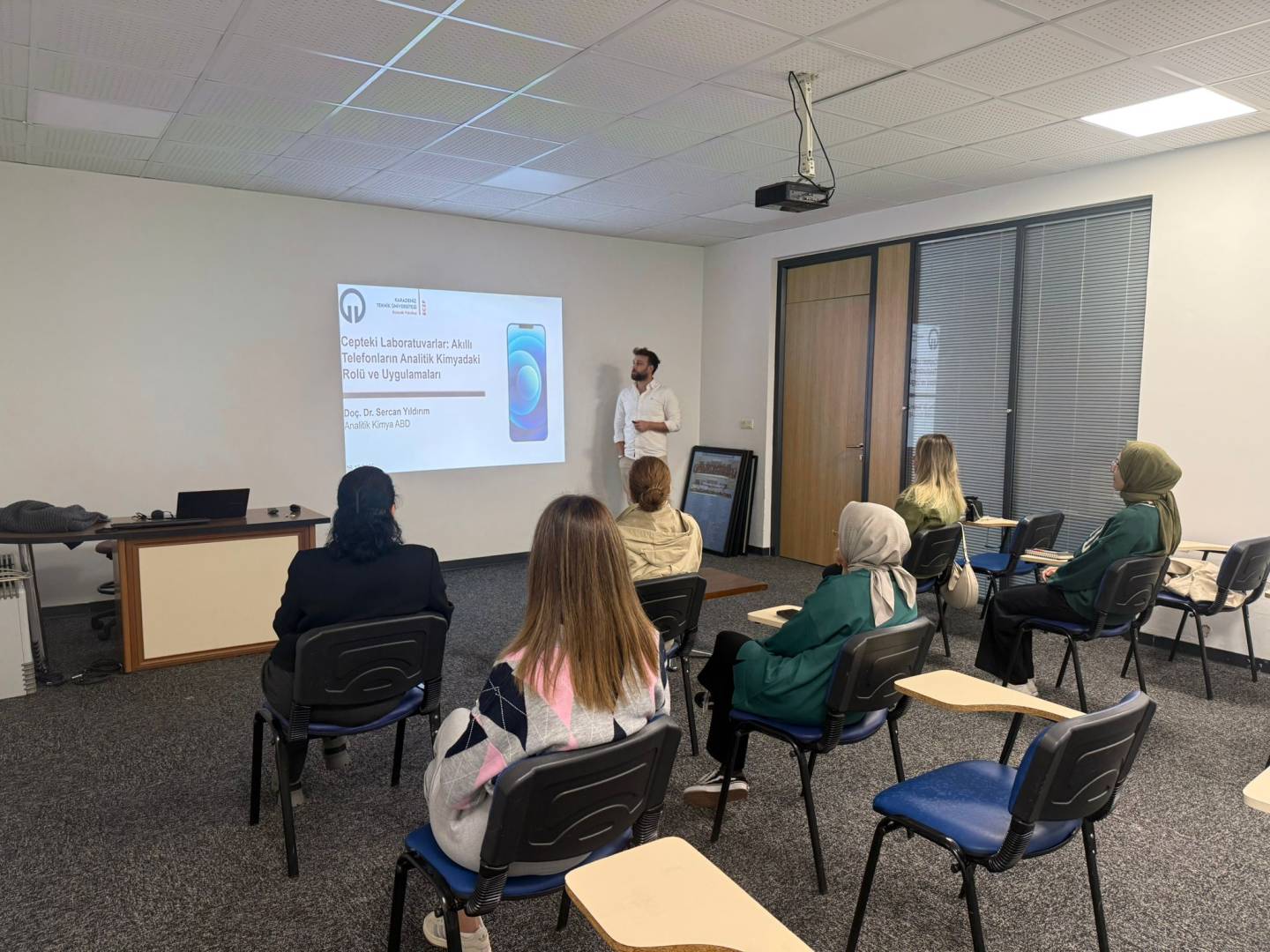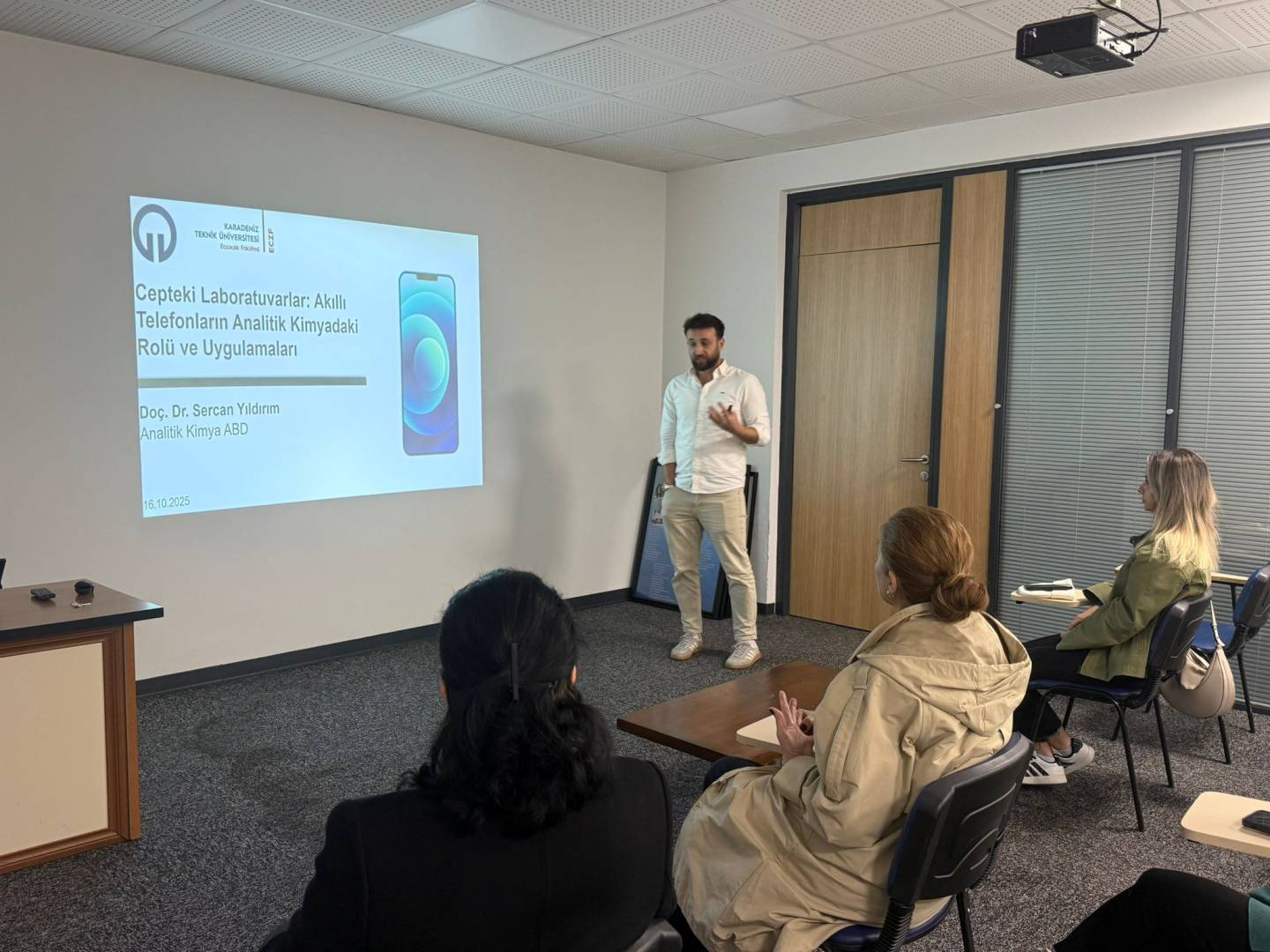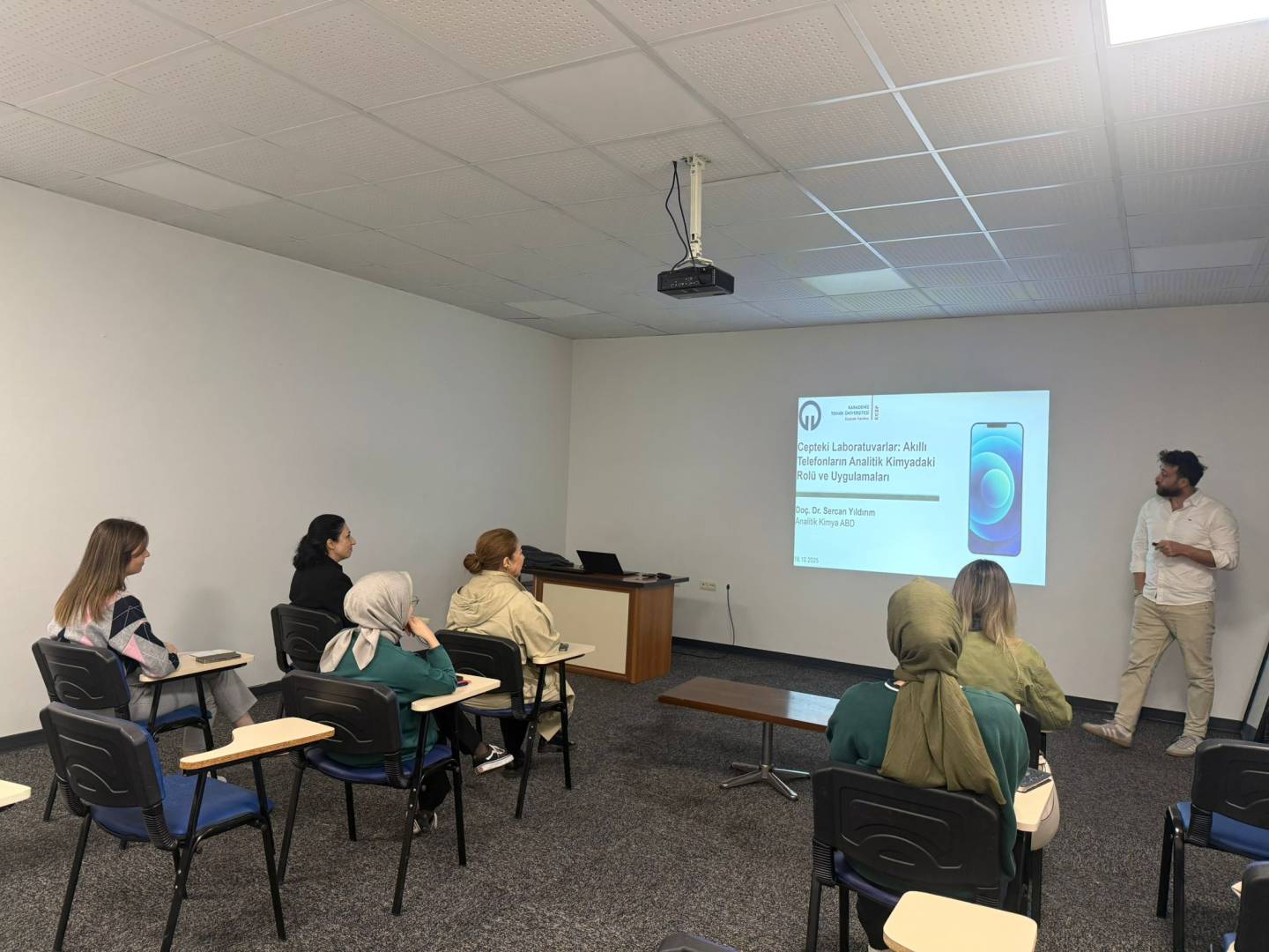 Analitik Kimya Anabilim Dalı tarafından düzenlenen seminer etkinliği kapsamında, Doç. Dr. Sercan YILDIRIM 16 Ekim 2025 tarihinde “Cepteki Laboratuvarlar: Akıllı Telefonların Analitik Kimyadaki Rolü ve Uygulamaları” başlıklı sunumunu gerçekleştirdi.