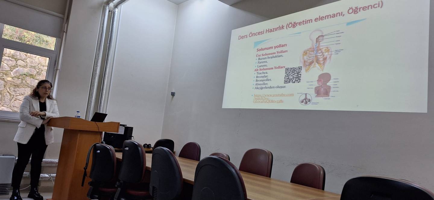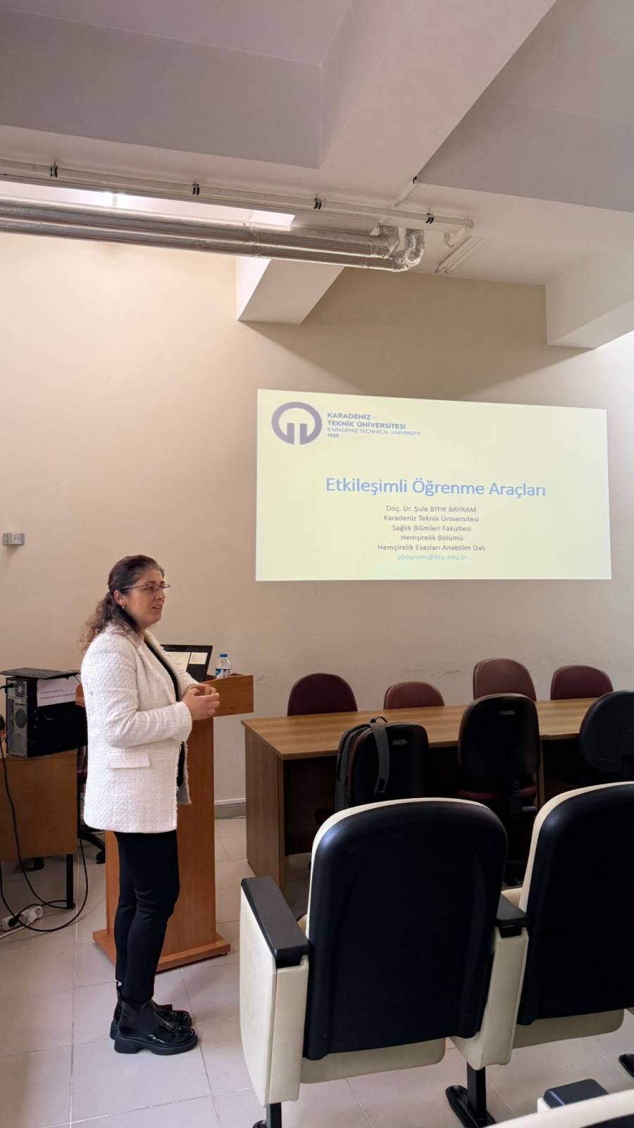 2025-2026 Eğitim Öğretim Yılı Güz Dönemi Hemşirelik Esasları ve Yönetim Anabilim Dalı Yüksek Lisans Programının 18 Aralık 2025 tarihinde saat 13.00’de “Etkileşimli Öğrenme Araçları” başlıklı bilimsel semineri Doç. Dr. Şule BIYIK BAYRAM tarafından verilmiştir.