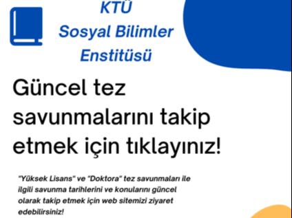 Yüksek Lisans ve Doktora tez savunmalarının tarih ve konularına güncel olarak erişmek için tıklayınız!