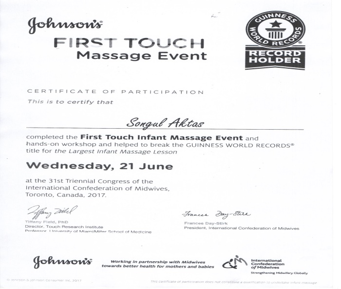 Aktaş, bu kongre kapsamında 21 Haziran 2017 tarihinde “perinal yırtıklarda sutur atma (uygulamalı), spirütel bakım, ebelik bakım modelleri” gibi bazı kurs ve sempozyumlara da katıldı. Yine “First Touch İnfant Massage Event” adlı largest İnfant Massage Lesson kursuna katılarak ilgili konuda GUINNES WORLD RECORDS’na katılımcı olarak girmiş ve ilgili konuda sertifikasını almıştır.
