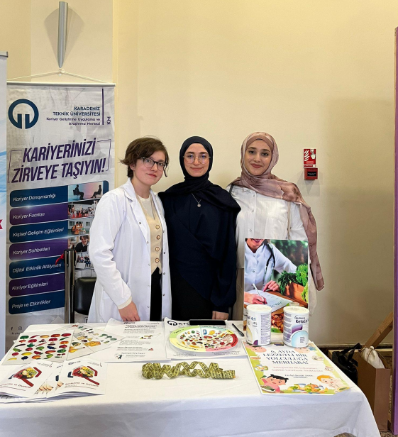 Karadeniz Teknik Üniversitesi Kariyer Geliştirme Uygulama ve Araştırma Merkezi tarafından düzenlenen “İnsan Kaynakları Kariyer Kongresi ve Fuarı” KTÜ Osman Turan Kültür ve Kongre Merkezi’nde gerçekleştirildi. Karadeniz Teknik Üniversitesi, Sağlık Bilimleri Fakültesi, Beslenme ve Diyetetik Kulübü İnsan Kaynakları Kariyer Kongresi ve Fuarında yer aldı. Öğrencilerimizin kariyer yolculuğuna yönelik yapılabilecekler katılımcılarla paylaşıldı