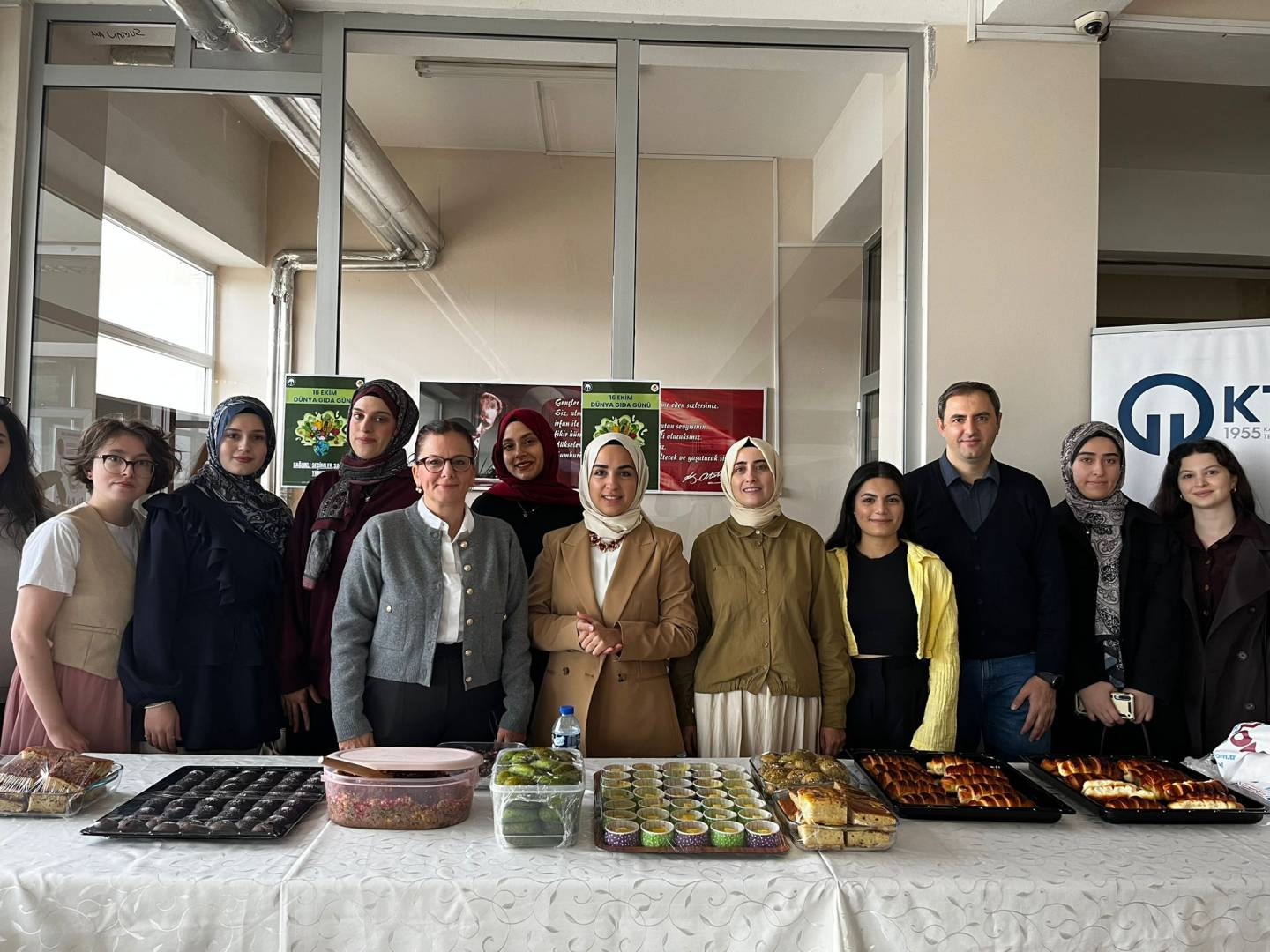 Beslenme ve Diyetetik Bölümü öğrenci kulübümüz tarafından 16 Ekim Dünya Gıda Günü kapsamında bir kermes düzenlendi. Etkinlikte öğrencilerimiz tarafından hazırlanan sağlıklı ürünler sergilenmiş, sürdürülebilir beslenme ve gıda israfının önlenmesi konusunda farkındalık oluşturulması amaçlanmıştır.
