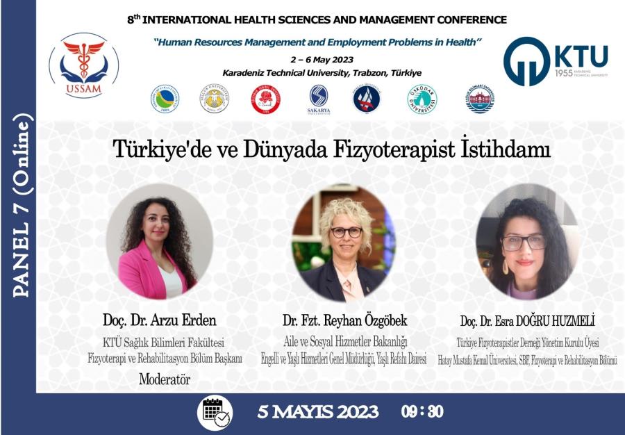 KTÜ Sağlık Bilimleri Fakültesi, Fizyoterapi ve Rehabilitasyon Bölümü öğretim elemanları 8. Uluslararası Sağlık Bilimleri ve Yönetimi Konferansına katılmışlardır. Bölüm Başkanı Doç Dr. Arzu ERDEN, “ Türkiyede ve Dünyada Fizyoterapist İstihdamı” başlıklı oturumu yönetmiştir. Bölüm öğretim üyelerinden Dr. Öğr Üyesi Umut Apaydın ve Dr. Öğr. Üyesi Turgay Altunalan ‘Determination of Low Back Awareness Levels in Health Management Students: A Pilot Study’ ve ‘Investigation Of Coronaphobia, Social Distance İn Health And Educational Science Professionals Working İn Special Education And Rehabilitation Centers During The Pandemic’ başlıklı sözlü bildirilerini sunmuşlardır.