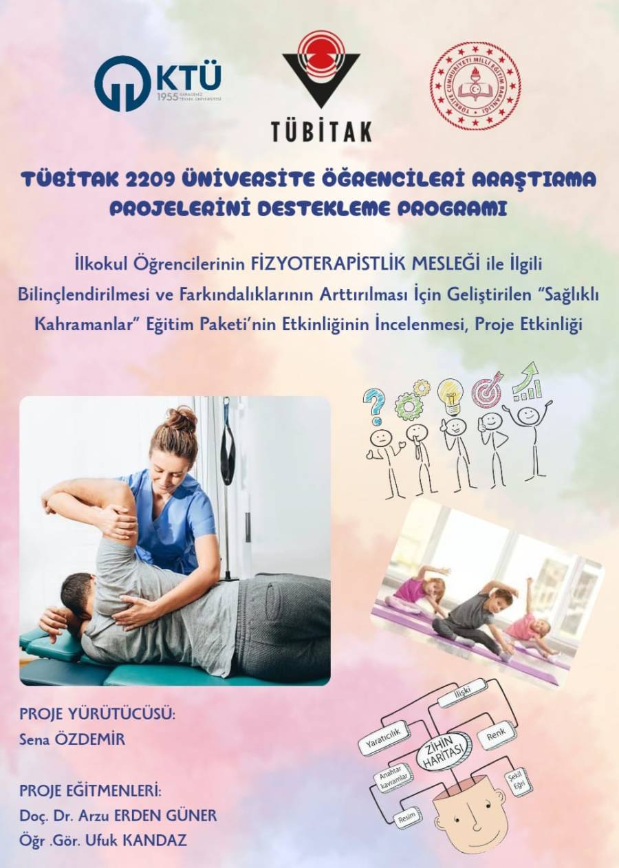 TUBİTAK 2209 Üniversite Öğrencileri Araştırma Projelerini Destekleme Programı kapsamında İlke Birey Okullarında Fizyoterapistlik Mesleğini tanıtan eğlenceli ve eğitici bir etkinlik gerçekleştirildi. Doç. Dr. Arzu Erden Güner'in danışmanlığındaki öğrencimiz Sena Özdemir'in yürüttüğü projede Çocuk Gelişim Uzmanı Öğr. Gör. Ufuk Kandaz hocamız eğitmenler arasında yer alarak mesleğimizi drama ve oyunlar eşliğinde keyifli bir ortamda öğrenmeleri sağlamıştır. Etkinlik Beyin Fırtınası ile başlayıp zihin haritalamayla sonlanmış, böylece öğrencilerin Fizyoterapistlik Mesleğini tanımaları sağlanmıştır. Misafirperverlik ve işbirlikleri için okul müdürümüz ve öğretmenlerimize çok teşekkür ederiz.
