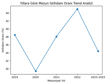 Bu bulgular doğrultusunda mezun izleme sistemlerinin güçlendirilmesi, kariyer planlama desteklerinin artırılması ve sektör iş birliklerinin geliştirilmesi mezunların istihdam oranlarının artırılmasına katkı sağlayacaktır.
