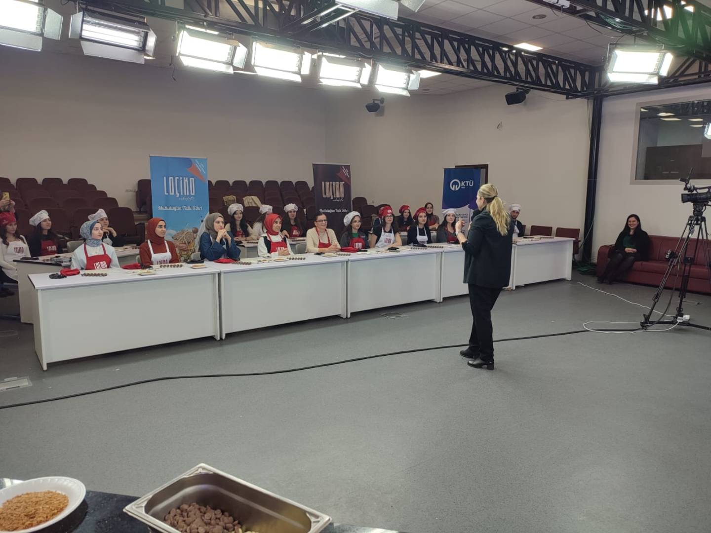 Lokma Tatlı pastane şefi rehberliğinde iki oturum hâlinde (10.00 ve 12.00 saatlerinde) gerçekleştirilen çalıştaya, KTÜ UZEM Müdürü Doç. Dr. Muhammet Berigel, Müdür Yardımcıları Öğr. Gör. Dr. Setenay Şevik ve Öğr. Gör. Yavuz Kablan ile birlikte toplamda 40 katılımcı katıldı.