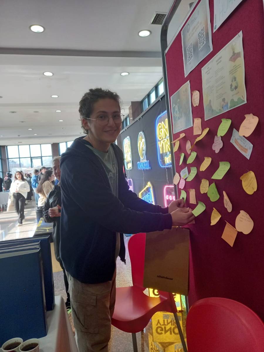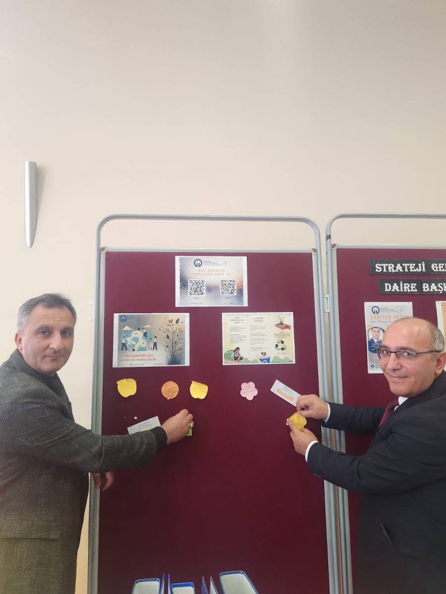 Stantta, Mali Hizmetler Uzmanlığı mesleğine ilişkin bilgilendirmeler yapılırken, sürdürülebilir mali yönetim anlayışını destekleyen uygulamalar hakkında farkındalık oluşturuldu. Ziyaretçiler ayrıca, sürdürülebilirlik temalı küçük notlar yazarak panoda paylaştı.