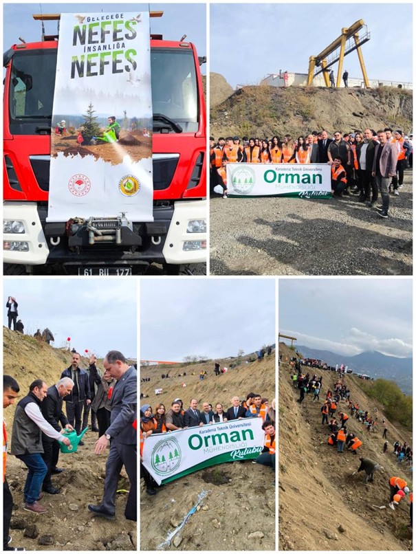 Ülke genelinde yürütülen “Geleceğe Nefes” kampanyası kapsamında 11.11.2024 tarihinde saat 11:00’de Akçaabat Şinik Organize Sanayi Bölgesinde “Bugün Fidan, Yarın Nefes” etkinliği düzenlenmiştir. Etkinliğe Trabzon Valisi Aziz YILDIRIM, Orman Fakültesi Dekanı Prof. Dr. Ömer KARA, Orman Mühendisliği Bölüm Başkanı Prof. Dr. Turgay DİNDAROĞLU, Trabzon Orman Bölge Müdürü Emin YILMAZ, bölge müdürlüğü personeli, öğretim üyeleri ve öğrenciler katılmıştır. (Haber linki)