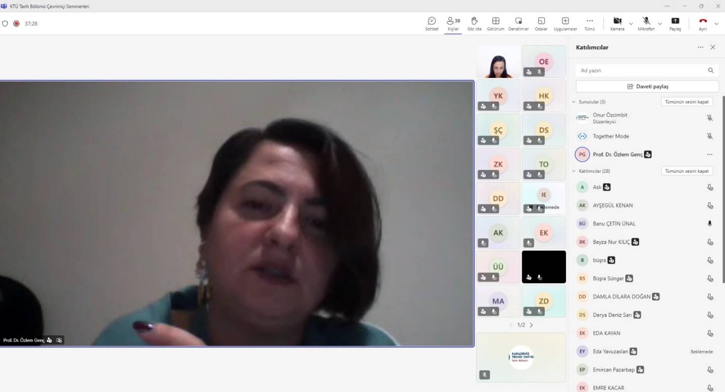 15.10.2025 tarihinde saat 20:00'da On Dokuz Mayıs Üniversitesi hocalarından Prof. Dr. Özlem Genç'in sunumu ile Ortaçağ Avrupası'nda Sosyal Hayat adlı çevrimiçi seminer KTÜ tarih bölümü hocaları ve öğrencilerinin de katılımı ile gerçekleştirilmiştir.