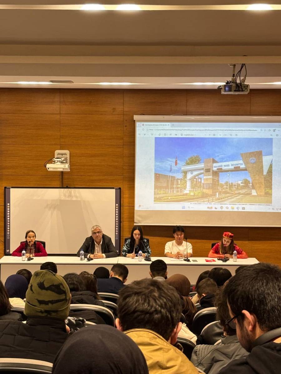 16.12.2025 tarihinde saat 14:30'da Türk Dünyasında gelen öğrencilerimizin sunumu ve Doç. Dr. Ahmet Köksal hocamızın moderatörlüğünde "Ev'den Irak'ta Ev'de Olmak Türk Dünyası Kardeşlik Toyu" faaliyeti gerçekleştirilmiştir.