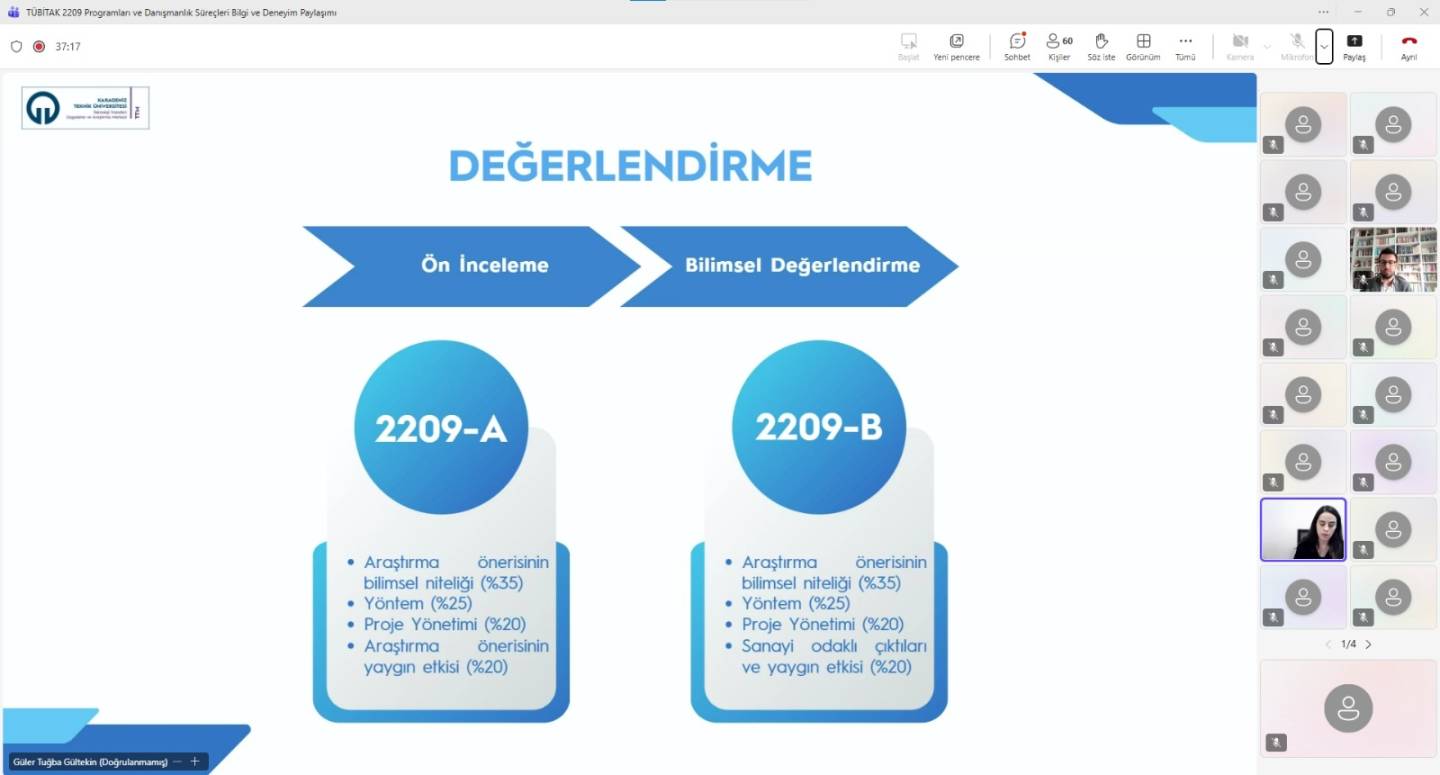 7.11.2025 tarihinde saat 14:30'da KTÜ TTM tarafından çevrimiçi olarak gerçekleştirilen  TÜBİTAK 2209 Programları ve Danışmanlık Süreçleri Bilgi ve Deneyim Paylaşımı etkinliğine Dr. Öğr. Üyesi İhsan Erdinçli de katılarak bilgi ve deneyimlerini paylaşmıştır.