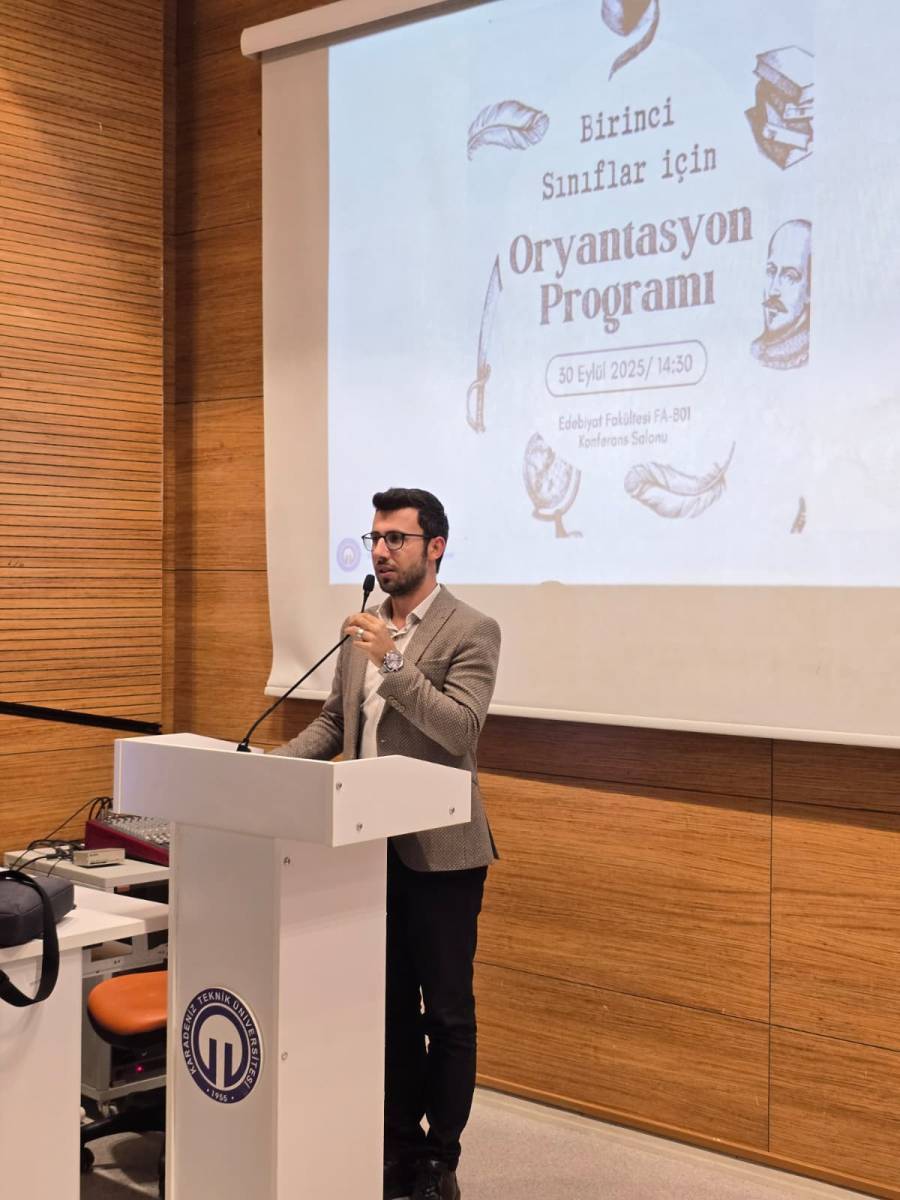 30.09.2025 tarihinde saat 14:30'da 2025-2026 Eğitim-Öğretim yılında bölümümüze yeni kayıt yaptırmış olan birinci sınıf öğrencilerimiz ile "Birinci Sınıflar İçin Oryantasyon Programı" etkinliği düzenlenerek bölümün ve üniversitemizin tanıtımı yapılmıştır.