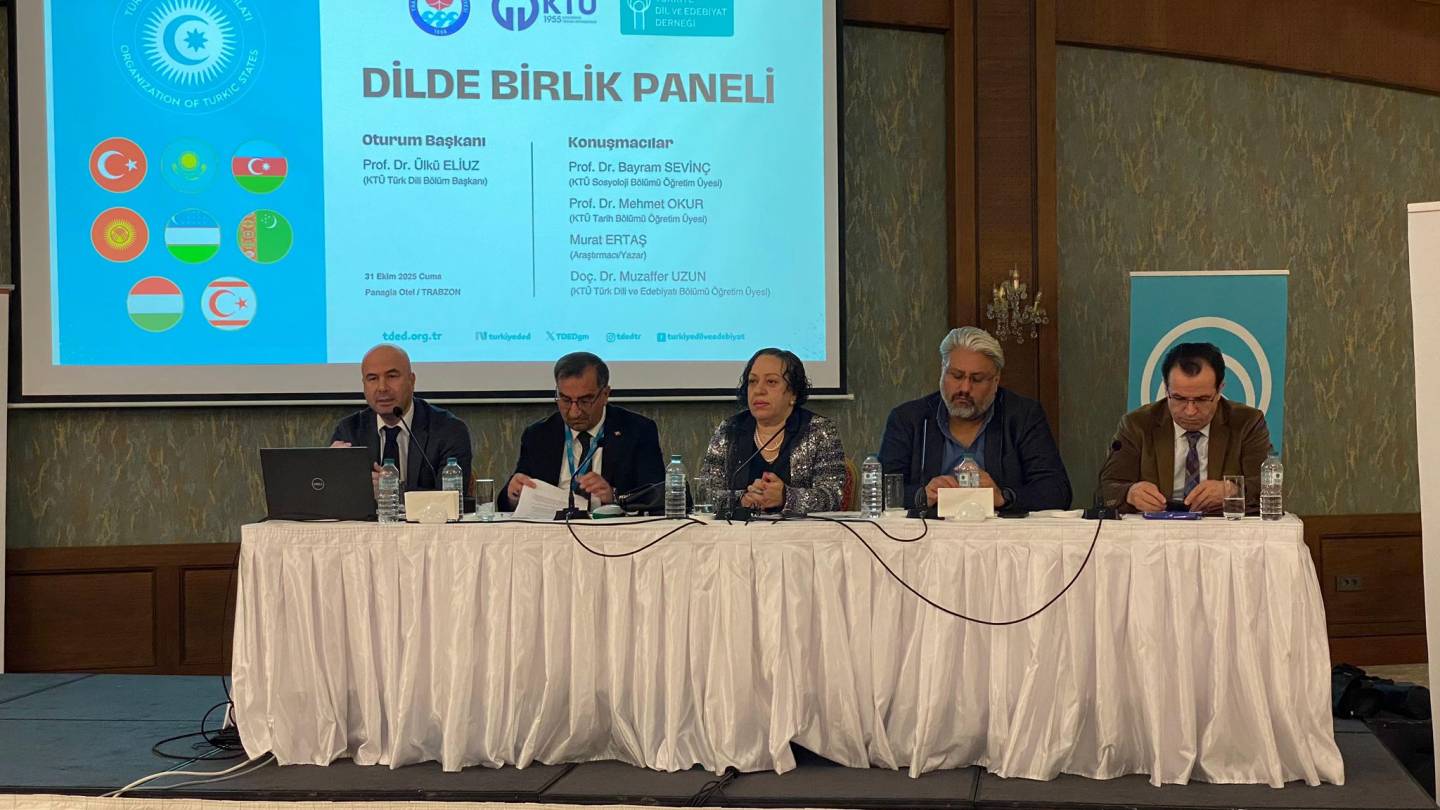 Panelde, bölümümüz öğretim üyelerinden Prof. Dr. Ülkü ELİUZ oturum başkanı olarak, Doç. Dr. Muzaffer UZUN ise konuşmacı olarak yer almıştır. Katılımcılar, alfabe tartışmaları, dil birliği ve ortak dil bilinci konularında görüşlerini paylaşmış, Türk dünyasında dil ortaklığının kültürel ve iletişimsel yönleri üzerine değerlendirmelerde bulunmuşlardır.