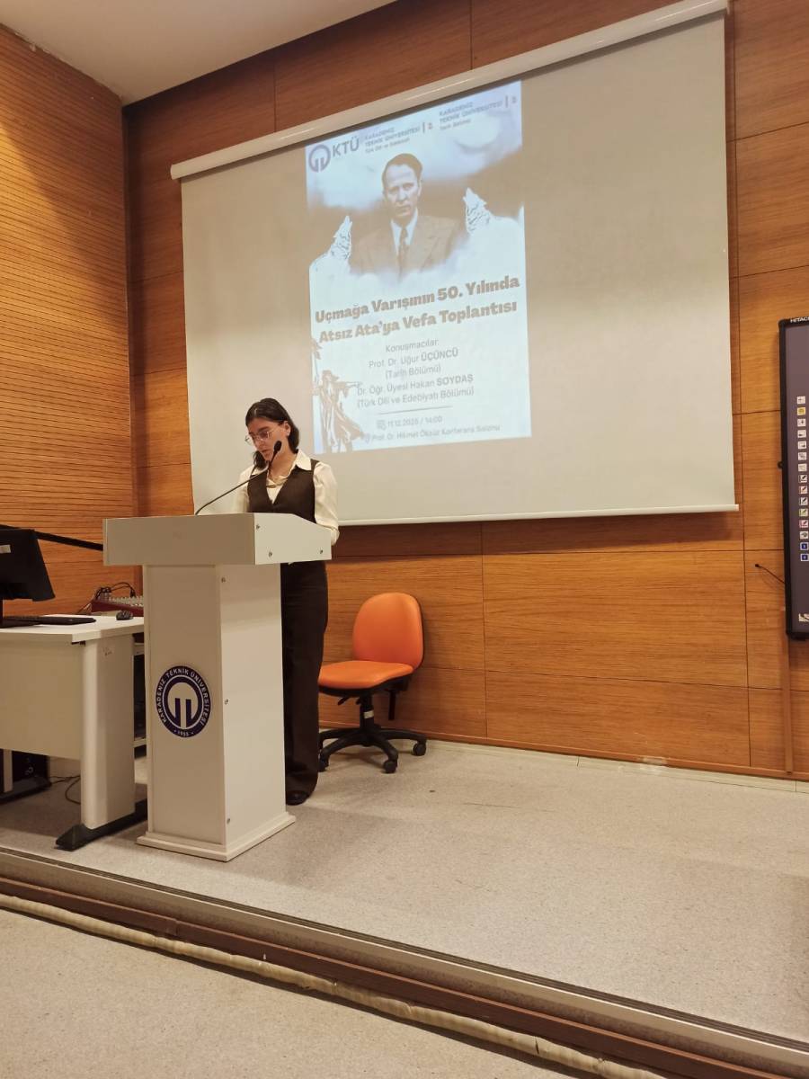 Bölümümüz ve Tarih bölümünün ortak olarak hazırladığı ''Uçmağa Varışının 50. Yılında Atsız Ata'ya Vefa Toplantısı'' başlıklı etkinlik, 11.12.2025 tarihinde Hikmet Öksüz Amfisi'nde gerçekleştirilmiştir.