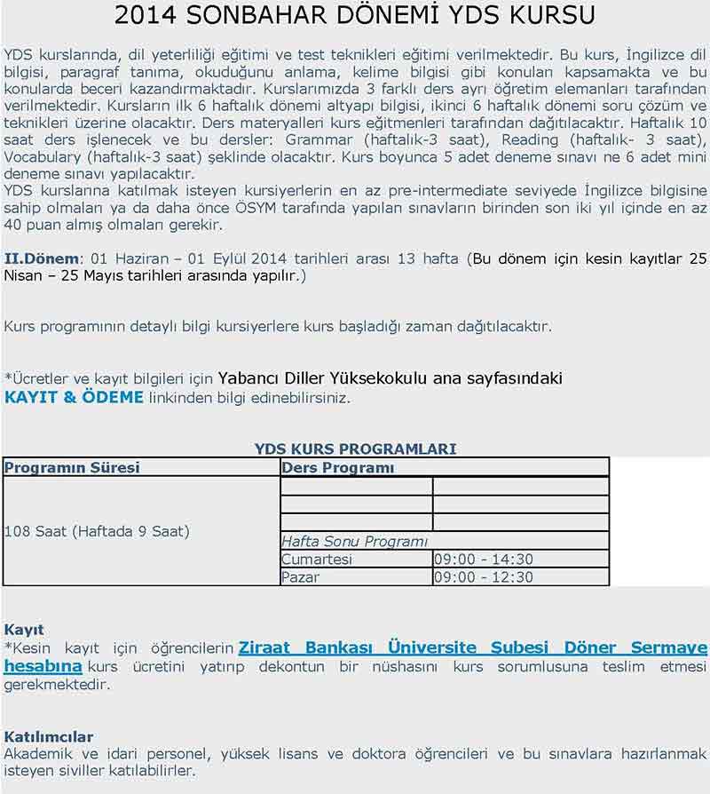 2014 Sonbahar Dönemi YDS Kursu