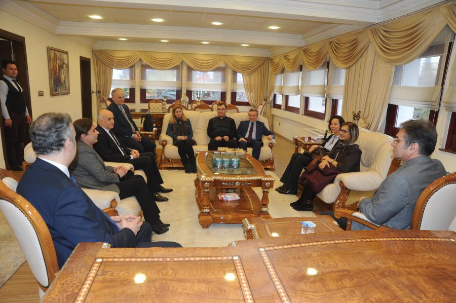 KTÜ İlaç ve Farmasötik Teknoloji Uygulama ve Araştırma Merkezi (İLAFAR) Yönetim Kurulu üyeleri Prof. Dr. F. Sena SEZEN (Müdür), Prof. Dr. Selma SARAÇ (Hacettepe Üniversitesi), Ferda FINDIK YAKAR (İlaç Endüstrisi İşverenler Sendikası), Veysel BAŞER (Trabzon Valiliği), Prof. Dr. Nuri KALYONCU (KTÜ Tıp Fakültesi), Prof. Dr. Serdar TÜRKYILMAZ (KTÜ Tıp Fakültesi), Dr. Öğr. Üyesi Tuba DİNÇER (Müdür Yardımcısı), Öğr. Gör. Ali Haydar DOĞU (Müdür Yardımcısı) Rektörlüğümüzü ziyaret ederek Rektör Yardımcılarımız Prof. Dr. Asım ÖREM ve Prof. Dr. Halil İbrahim OKUMUŞ ile görüş alışverişinde bulundu.
