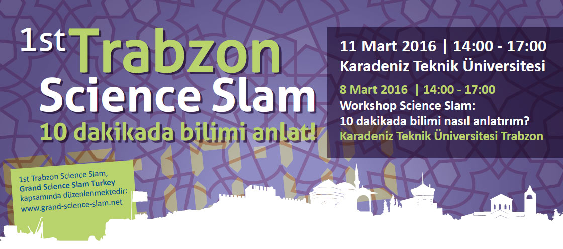 1. Trabzon Science Slam yarışması Üniversitemizde yapılacak olup yarışmanın içeriği, başvuruların nasıl yapılacağı aşağıda açıklanmıştır.