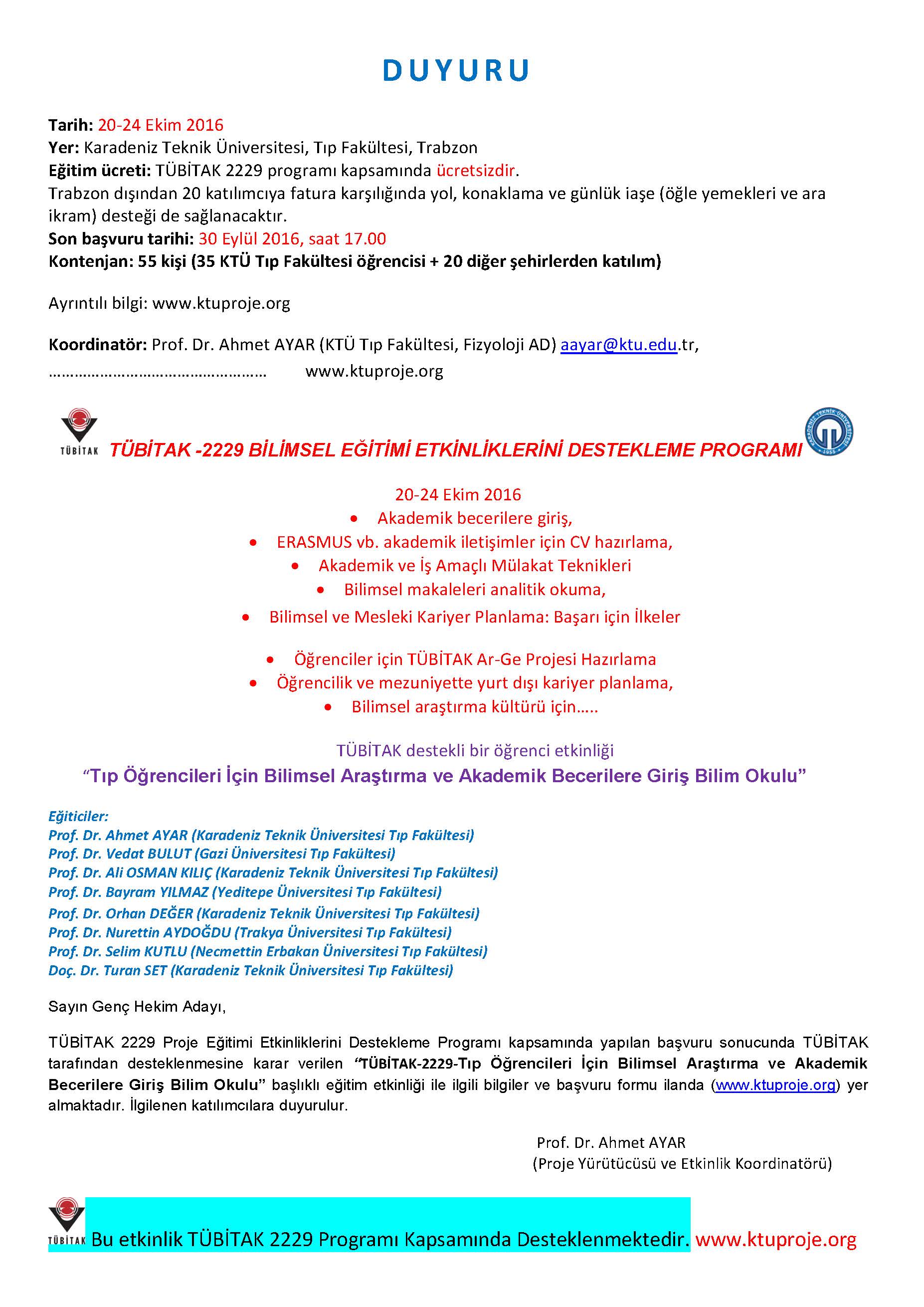 Tıp Öğrencileri için TÜBİTAK Destekli Kurs