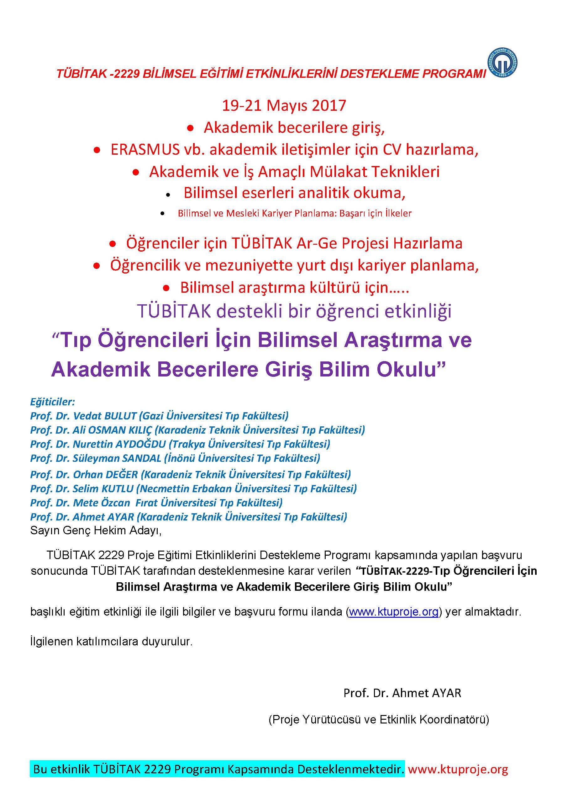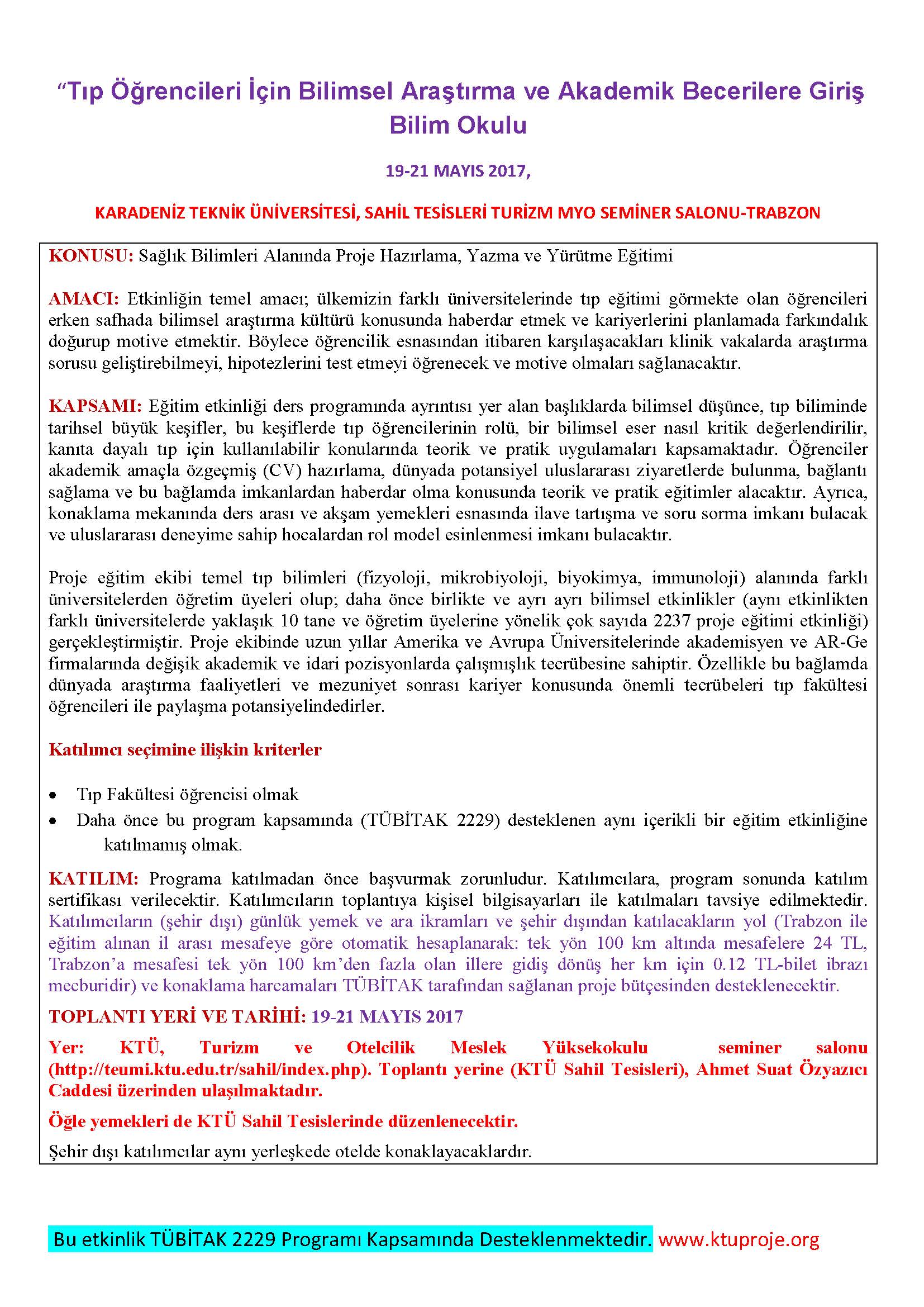 Tıp Öğrencilerine Yönelik TÜBİTAK Destekli Bilim Okulu