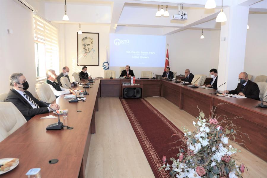Üniversitemiz Genel Sekreterliği tarafından hazırlanan “180 Günlük Eylem Planı (01.04-2021-30.09.2021) Sonuç Raporu”, Rektörümüz Prof. Dr. Hamdullah ÇUVALCI başkanlığında, Rektörlük Senato Salonu’nda gerçekleştirilen bir toplantı ile sunuldu.