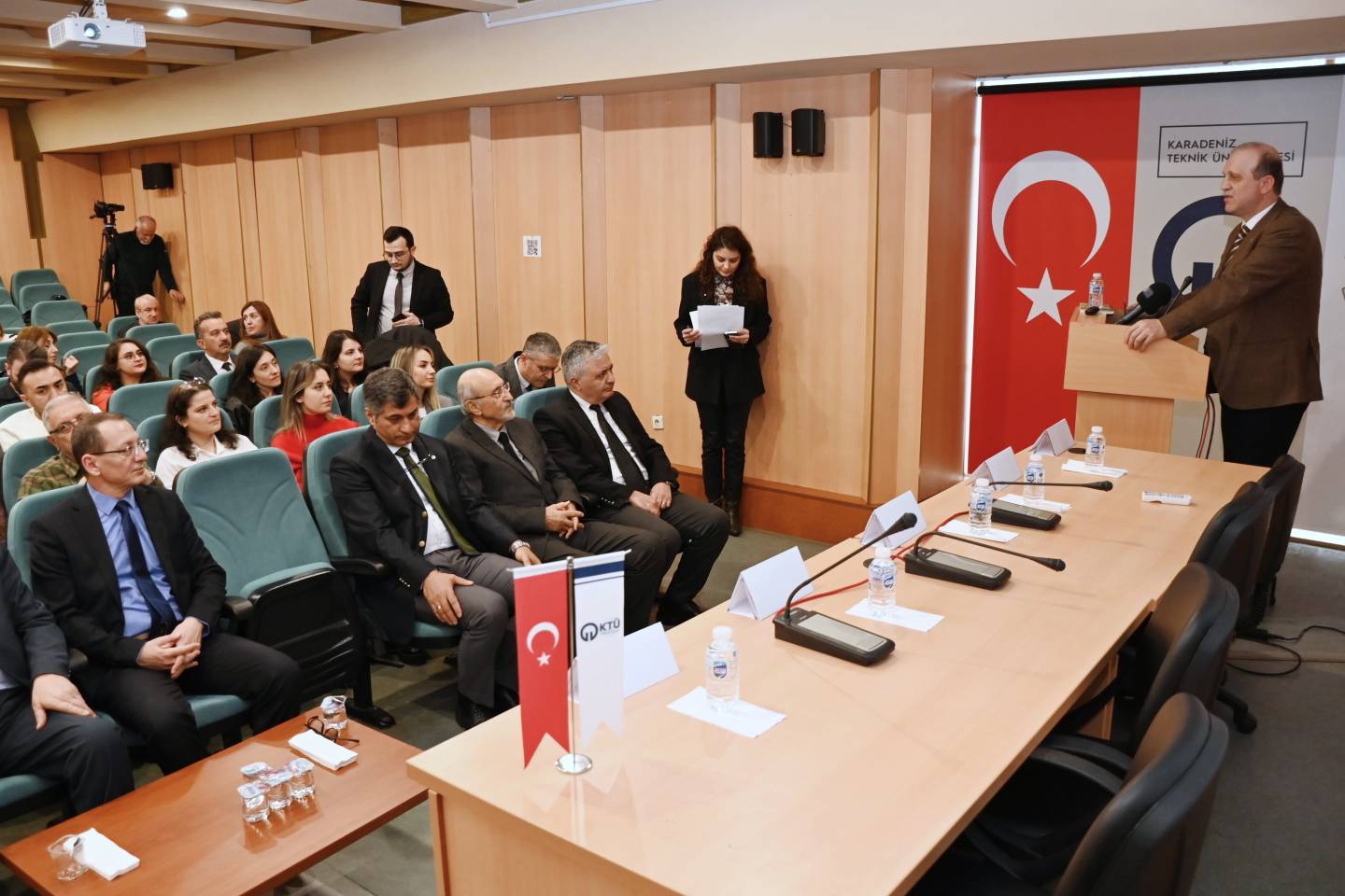 Türkiye Mühendis ve Mimar Odaları Birliği (TMMOB) Şehir Plancıları Odası Trabzon Şubesi öncülüğünde düzenlenen panele; Trabzon Vali Yardımcısı Ali YILMAZ, Trabzon Büyükşehir Belediye Başkan Yardımcısı Ahmet Yüksel GÜLAY, Üniversitemiz Rektörü Prof. Dr. Hamdullah ÇUVALCI, Üniversitemiz Mimarlık Fakültesi Dekanı Prof. Dr. Cenap SANCAR, Harita Mühendisleri Odası Başkanı Prof. Dr. Ebru ÇOLAK ile TMMOB Trabzon İl Koordinasyon Kurulu’na bağlı meslek odalarının temsilcileri, kamu kurum ve kuruluşları ile sivil toplum kuruluşlarının temsilcileri, akademisyenler ve öğrenciler katıldı.