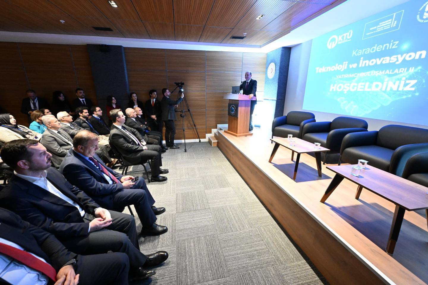 Programa Rektörümüz Prof. Dr. Hamdullah ÇUVALCI, Beşikdüzü Kaymakamı Ferhat VARDAR, Trabzon Ticaret ve Sanayi Odası Başkanı Erkut ÇELEBİ, KTÜ TTM Müdürü Öğr. Gör. Emrah AYVAZ ile yatırımcılar, akademisyenler, girişimciler ve iş dünyası temsilcileri katıldı.