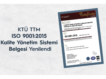 KTÜ TTM almış olduğu Kalite Belgesi kapsamında iç ve dış denetimlerini tamamlamış ve bu belgesini, 2021 yılı itibariyle yenilemiştir.