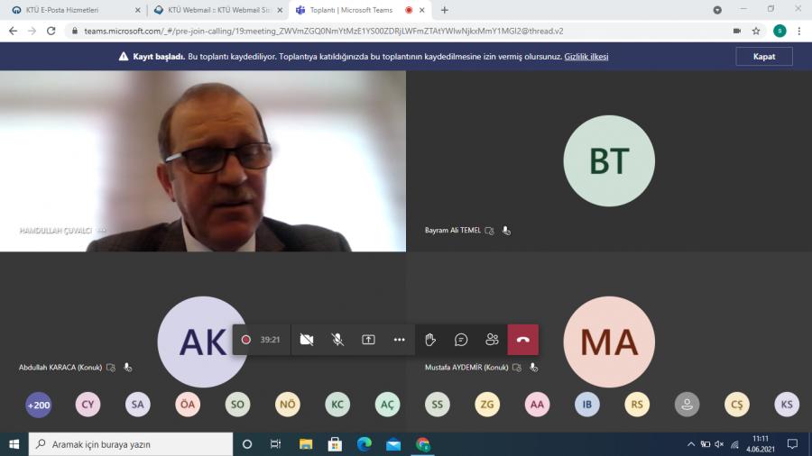 Çevrim içi olarak düzenlenen toplantıda, Rektör Yardımcılarımız; Prof. Dr. Akif CİNEL, Prof. Dr. Halil İbrahim OKUMUŞ ve Prof. Dr. Cemil RAKICI da hazır bulundu.