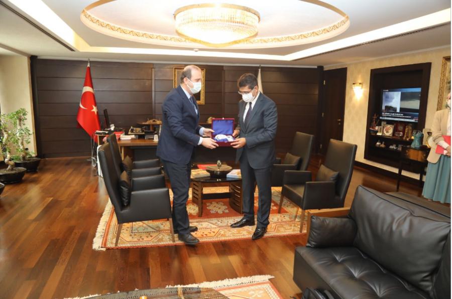 Ziyarette, Üniversitemizin sektörel politika ve stratejiler geliştirmesi doğrultusunda ortak plan, program, bütçe uygulanmalarının koordinasyonu ile ulusal kalkınma alanları hakkında geliştirilebilecek iş birlikleri ve Üniversitemiz bünyesindeki otopark ve Çocuk Hastanesi inşaatı konusunda görüş alışverişinde bulunuldu. Ziyaret, hediye takdiminin ardından son buldu.