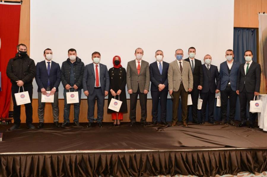 Rektörümüz Prof. Dr. Hamdullah ÇUVALCI; Doğu Karadeniz Belediyeler Birliği'nin (DKBB) 2020 Yılı 2. Olağan Meclis Toplantısı'na katıldı. Toplantı sonunda; DKBB üyesi belediyelerde görev yapan personellerden KTÜ Sosyal Bilimler Enstitüsü Tezsiz Yüksek Lisans Programlarını başarı ile bitirenlere Meclis Başkan Vekili Gümüşhane Belediye Başkanı Ercan ÇİMEN ve Rektörümüz Prof. Dr. Hamdullah ÇUVALCI tarafından mezuniyet ödülleri takdim edildi.
